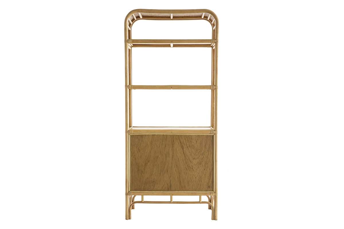 Légère et peu encombrante, cette jolie bibliothèque haute avec rangement fermé trouvera sa place dans de nombreuses pièces de vie. Elle réchauffera tous les intérieurs avec son look exotique et ensoleillé ! On l'imagine aux côté d'une table basse et meubles de rangement en bois massif ou rotin du même effet.