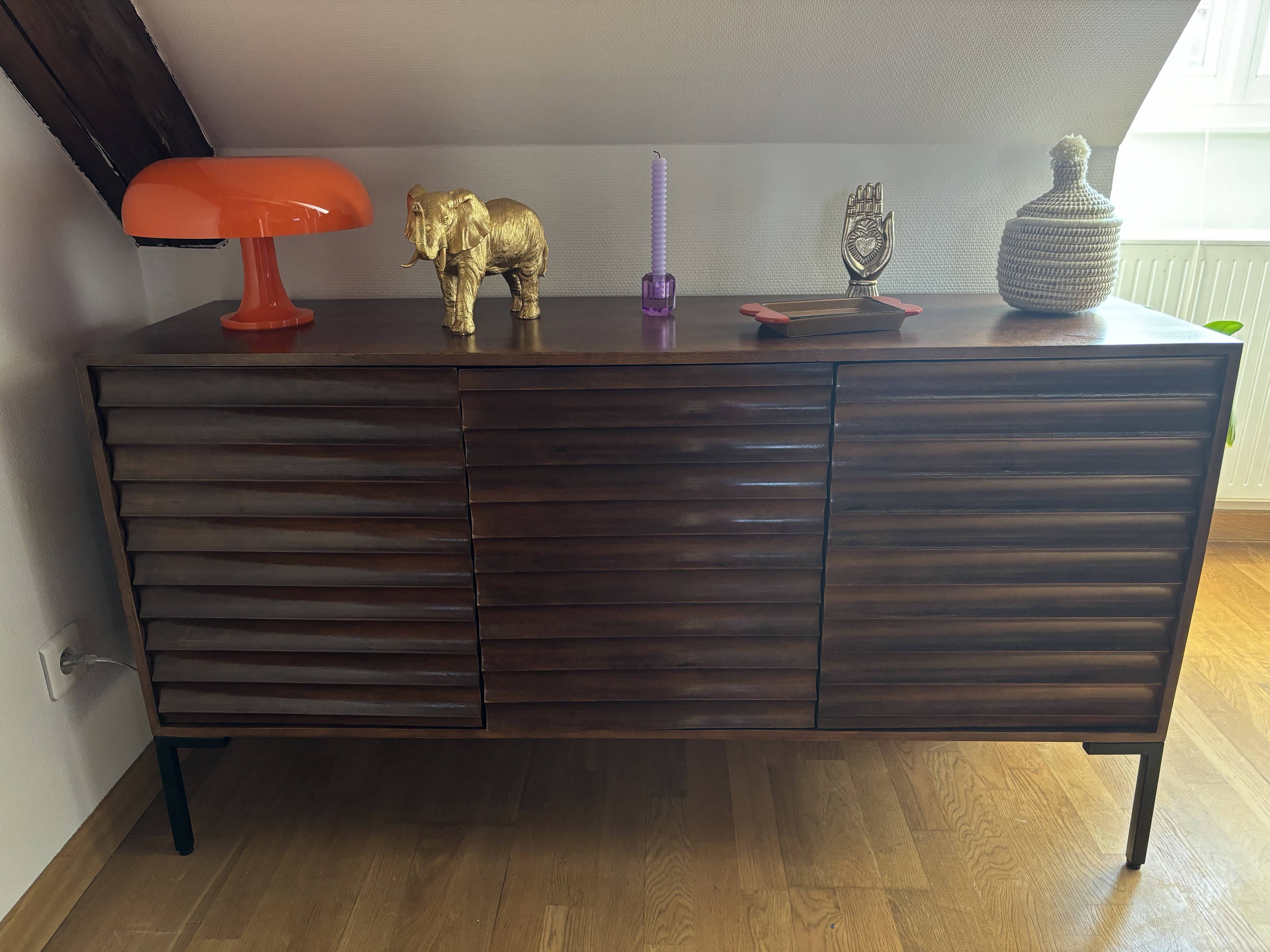 Fruit d'un savoir-faire unique, ce buffet artisanal s'intégrera parfaitement dans une pièce de vie à la décoration contemporaine. On l'imagine aussi très bien dans un univers plus vintage. Pour un salon harmonieux, vous pouvez l'associer à un meuble TV en bois foncé.