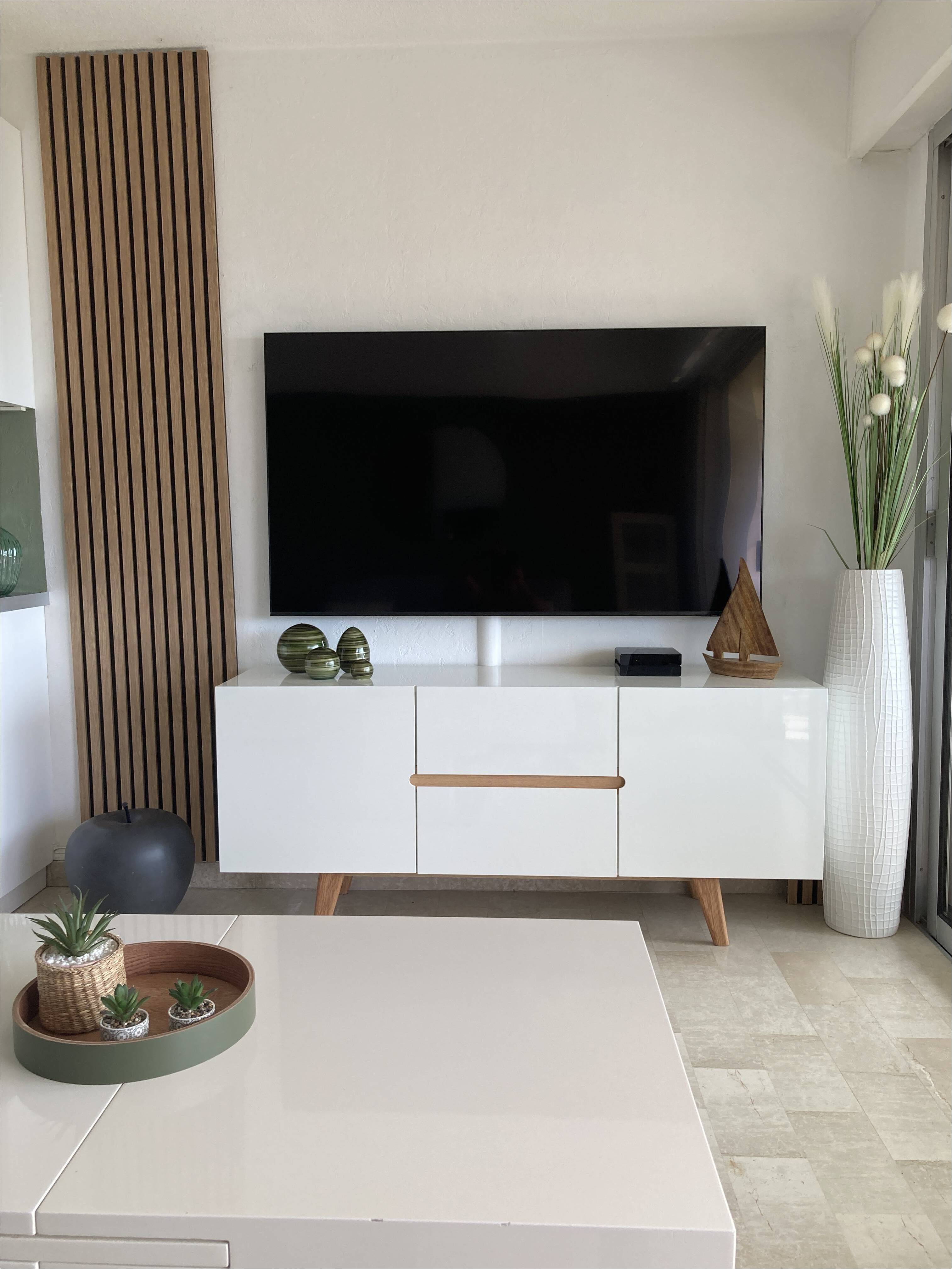 Dans une ambiance douce et chaleureuse on imagine parfaitement ce buffet blanc et bois clair apporter une note d'épure. Associez MELKA à d'autres meubles de rangement du même effet et profitez ainsi d'une décoration d'intérieur harmonieuse.