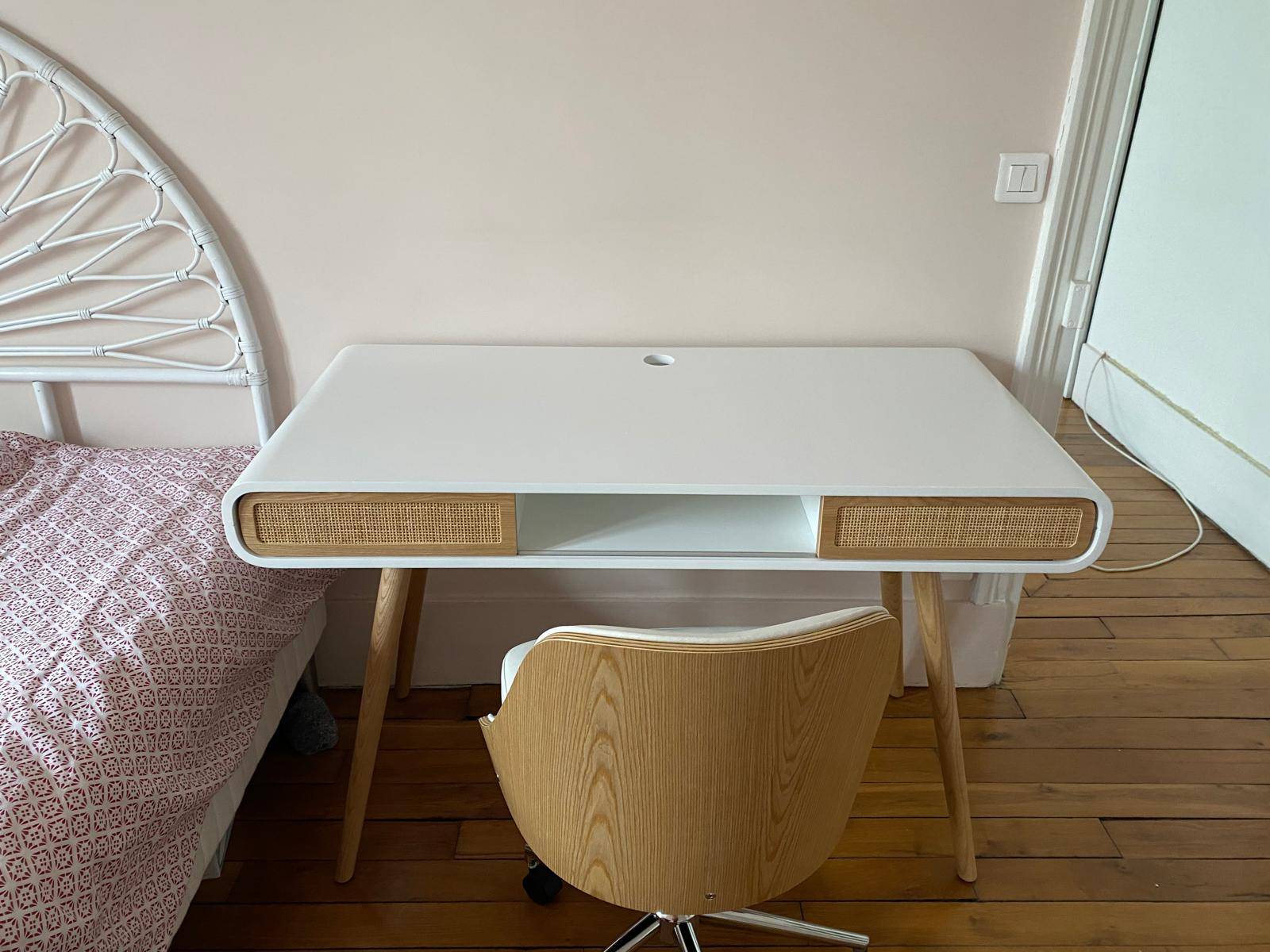 Joli mix entre en panneaux de fibres de bois plaqué frêne, un piètement en frêne massif et des portes en rotin, le bureau OLYMPE est un meuble qui ne manque pas de charme. En revisitant l'utilisation du cannage dans une version actuelle, il cultive son propre style.