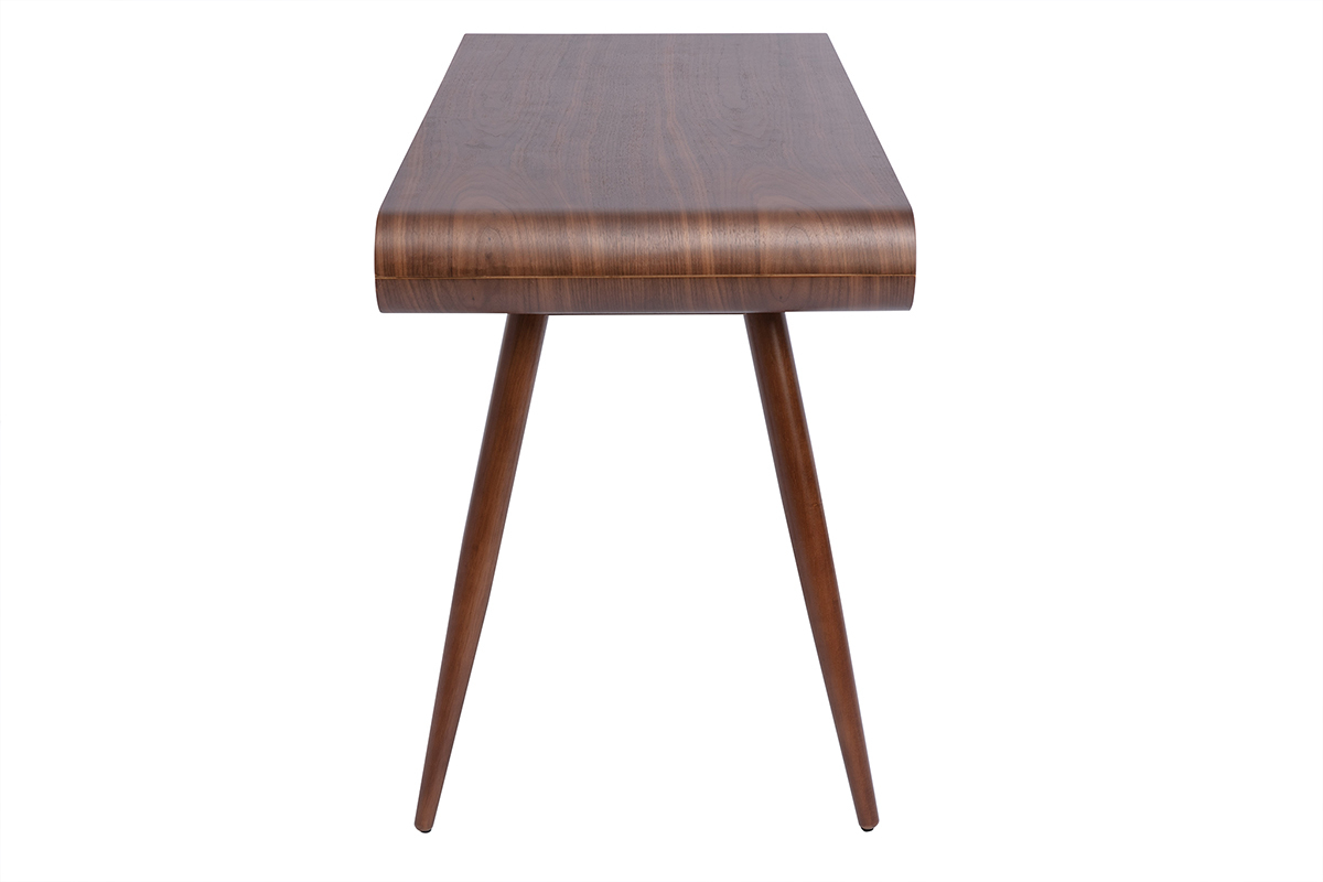 Bureau avec rangements 2 tiroirs vintage bois foncé noyer L120 cm BJORG livré prêt à assembler.