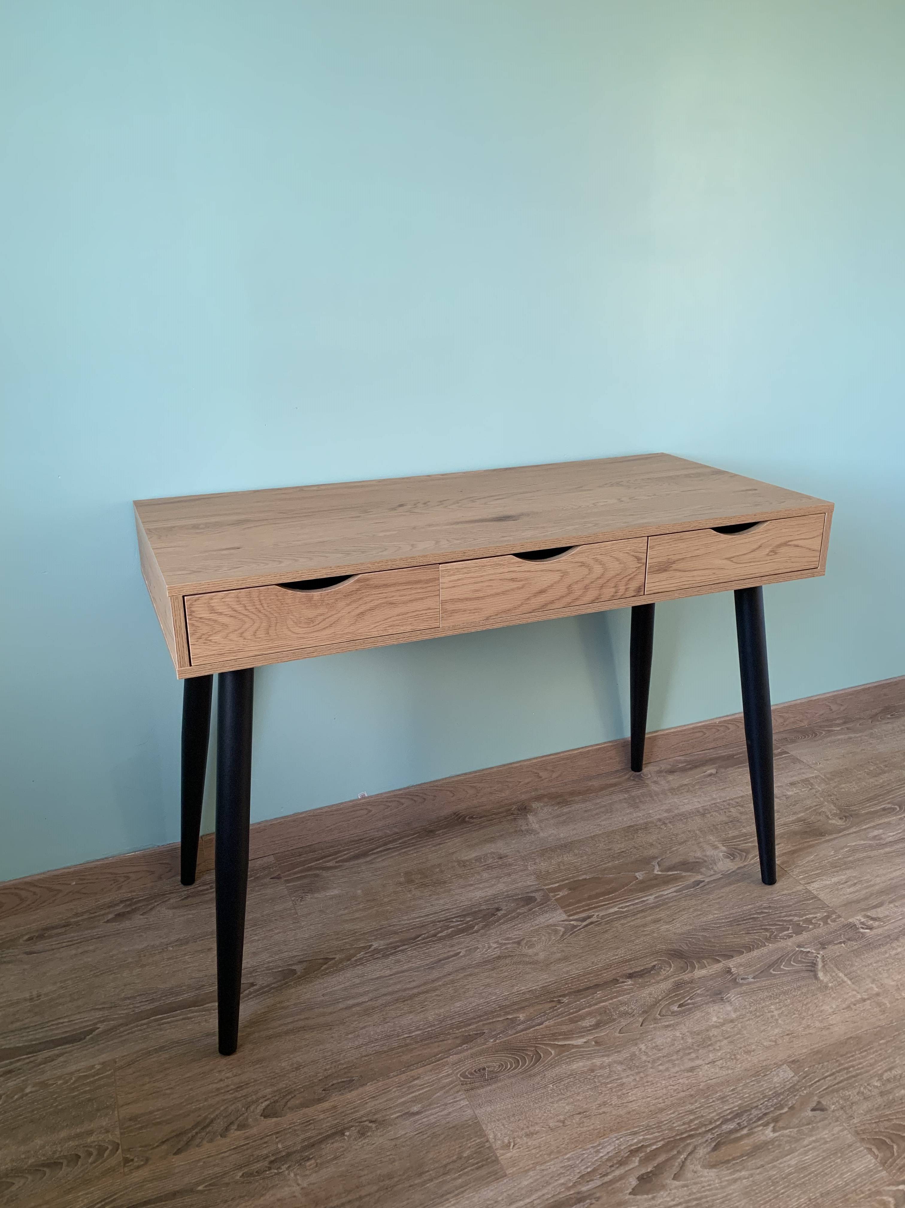 Grâce à ses petites dimensions (L110 x P50 x H77 cm), le bureau BALZAC est idéal pour aménager un coin bureau confortable dans un petit espace. Ce petit bureau est équipé de trois tiroirs pour organiser toutes les affaires de travail. Gain de place et parfaitement optimisé, ce bureau en bois a tout bon !