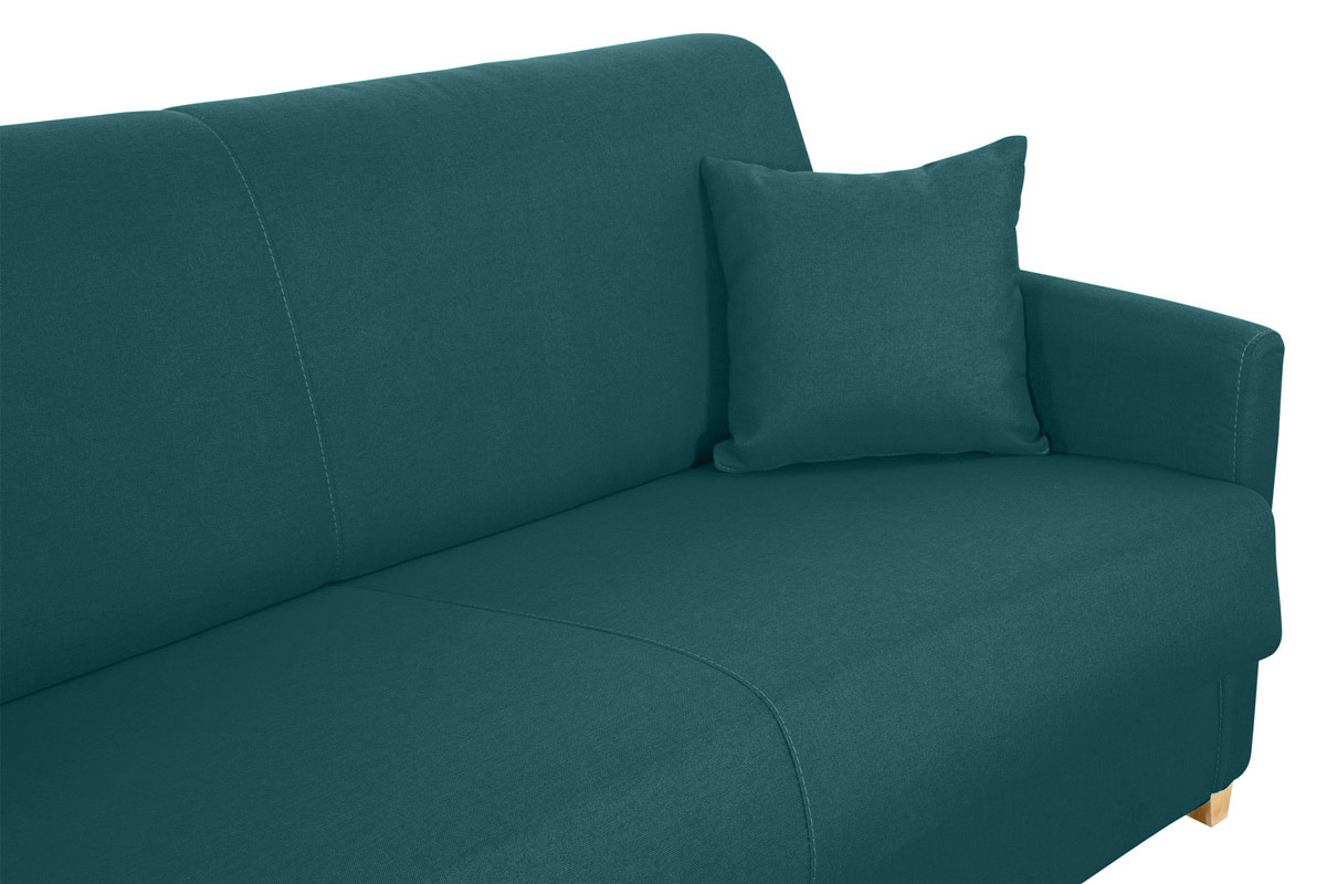 Grâce à ses dimensions compactes (L176 x L99-210 x H68-92 cm), ce petit canapé convertible bleu canard est idéal dans les appartements où chaque m² comtpe. Ce canapé gain de place possède deux espaces de rangement intégrés au dossier afin d'offrir tout le confort nécessaire à vos convives.