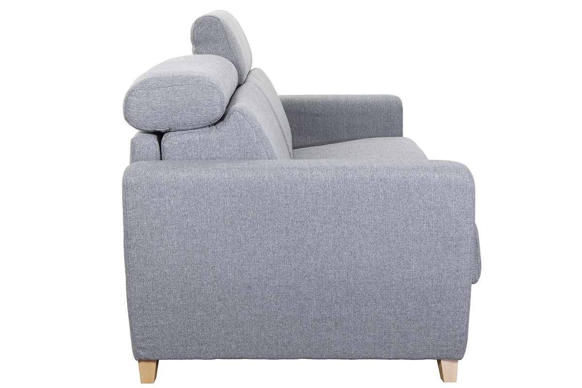 Ce canapé 3 places est revêtu d'un tissu gris élégant et équipé d'un piètement authentique en hêtre massif. L'association de ces matériaux rappelle ce qui fait le succès des canapés scandinaves tout en apportant un charme certain à cette assise. On aime particulièrement son design épuré qui lui donne ce style indémodable et ses têtières ajustables pour le confort. Le canapé GOYA renferme tout ce qu'on attend d'un canapé confortable : une assise agréable et des têtières réglables pour ajuster le confort de chacun.