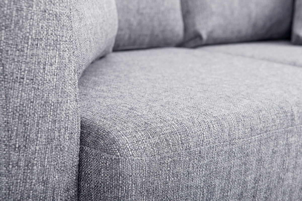 Avec son revêtement en tissu, son piètement en bois clair et son design épuré, ce petit canapé s'inscrit dans la tendance nordique. Son tissu gris clair en fait une assise dans l'air du temps qui se mariera aussi bien avec une décoration d'inspiration scandinave qu'un intérieur moderne et graphique.
