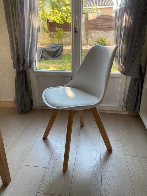 Dotées d'une assise confortable, habillée d'un revêtement en polyuréthane et rembourrée d'une mousse densité 28 kg/m³, ces chaises de salle à manger et cuisine sont soutenus par un solide piètement en hêtre massif qui apporte une touche originale à ce modèle.