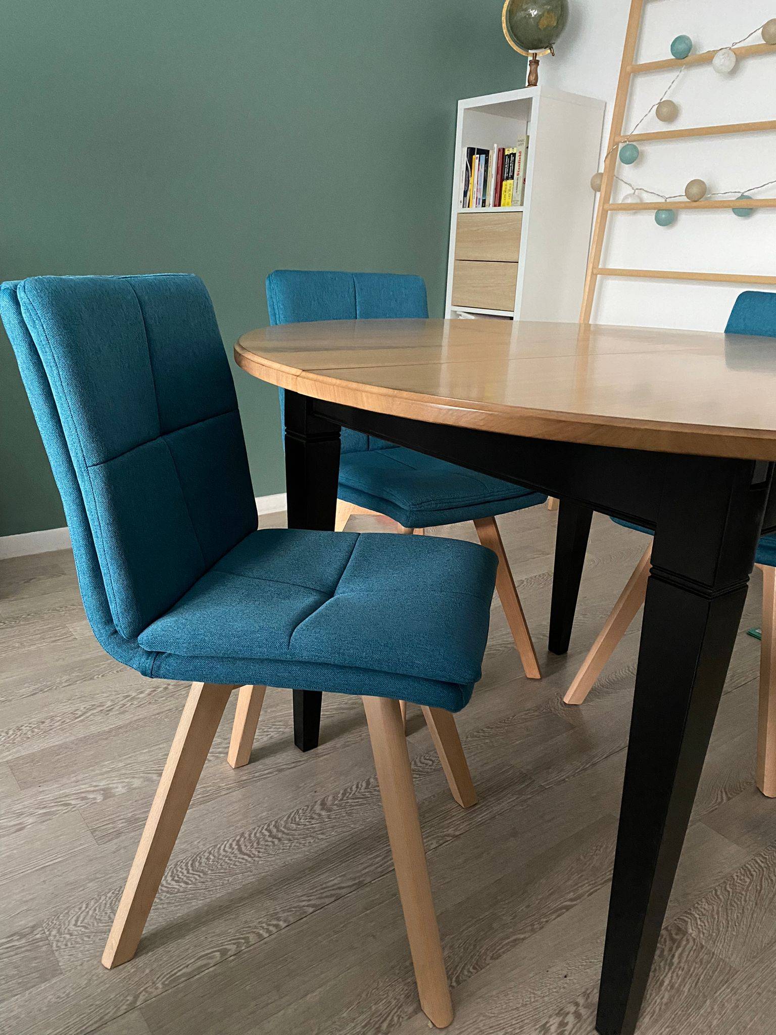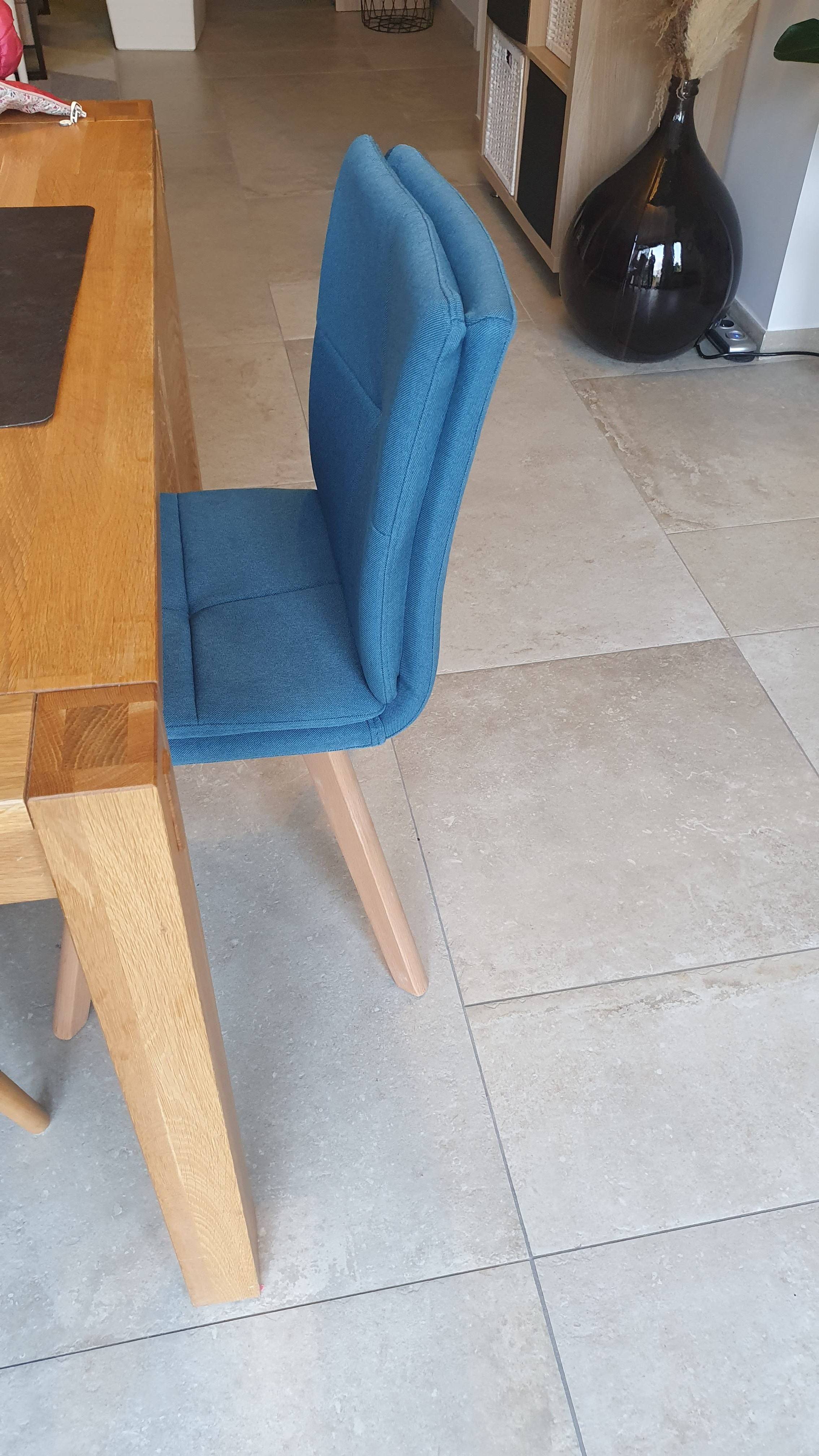 Leur rembourrage et leur grand dossier assurent un excellent maintien et un bon confort d'assise. Soutenues par un solide piètement en hêtre massif, ces chaises scandinaves nous accompagnent au quotidien. Elles seront idéales pour habiller sobrement une table à manger en bois.