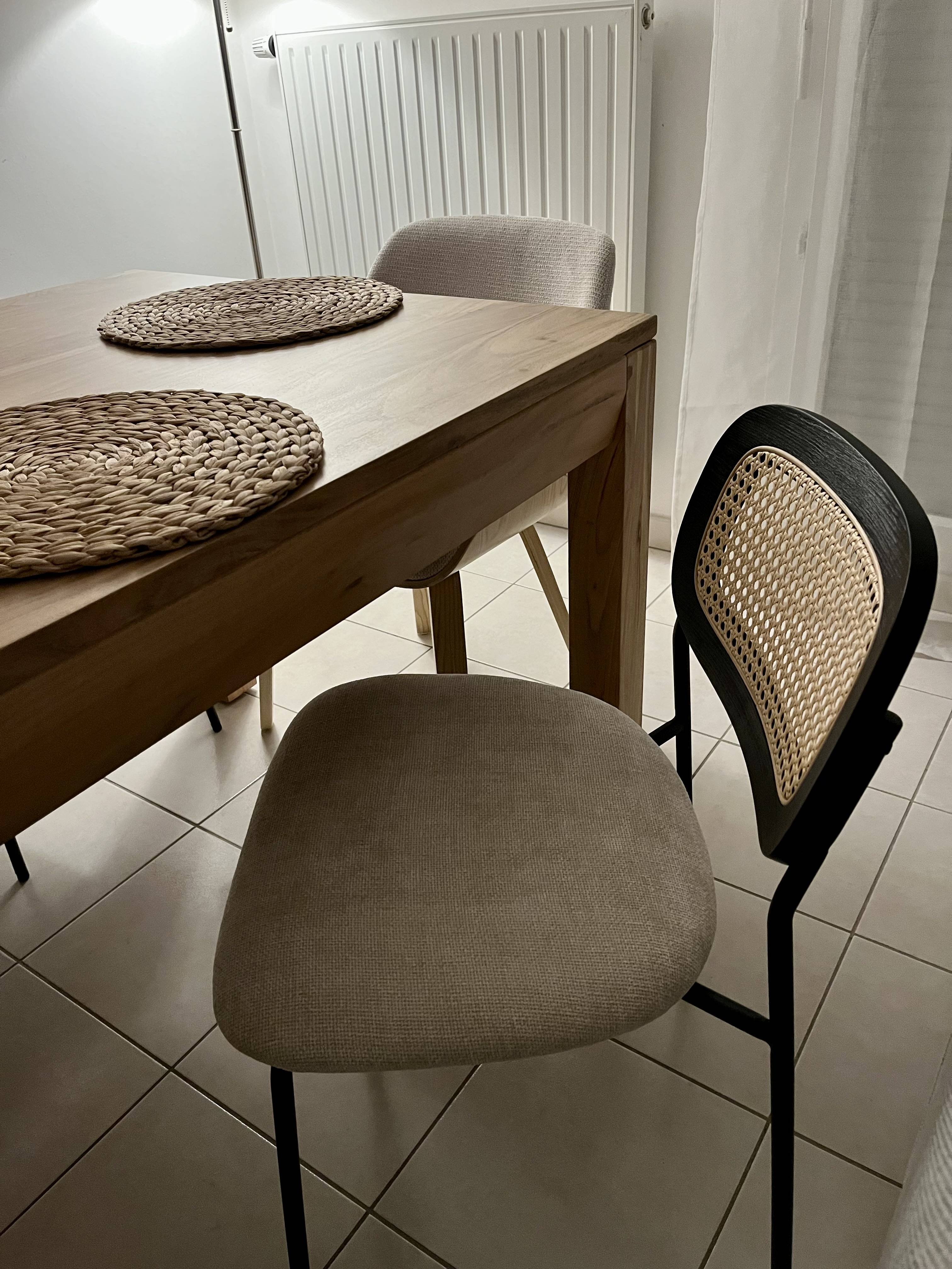 Les chaises MIRANDA, avec leur design soigné et leurs assises en tissu effet velours texturé beige, incarnent l'élégance et le confort pour sublimer n'importe quel espace de vie. Idéales pour la salle à manger, elles allient style contemporain et inspirations naturelles, créant une ambiance chaleureuse et accueillante. Le dossier en cannage rotin synthétique ajoute une touche artisanale et authentique, rappelant les tendances modernes tout en apportant une note rétro chic. Cette combinaison unique de matières en fait un choix idéal pour les intérieurs à la recherche d'originalité et de caractère.