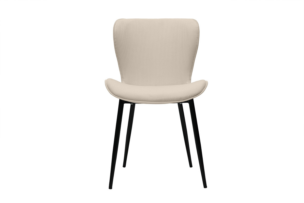 Chaises design en tissu velours côtelé beige et métal noir ADDICT vendues par lot de 2. Livrées prêtes à assembler. Montage simple, seuls les pieds sont à fixer.