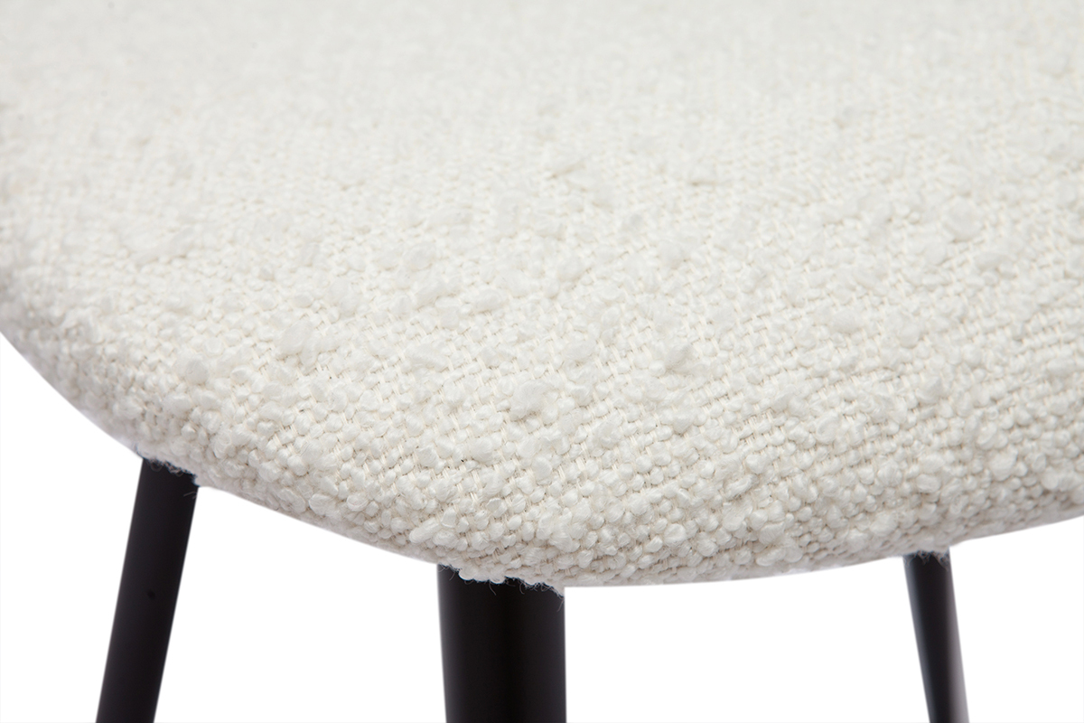 Avec leur silhouette élancée et leurs courbes généreuses, ces chaises offrent une esthétique douce et minimaliste. Elles vont à l'essentiel pour un rendu chic et tendance. Ces sièges en tissu effet laine bouclée blanc et métal noir au rendu élégant seront du plus bel effet dans un intérieur à la décoration contemporaine. La silhouette légère de ces chaises en bouclette habillera l'espace repas d'un style fin et délicat.