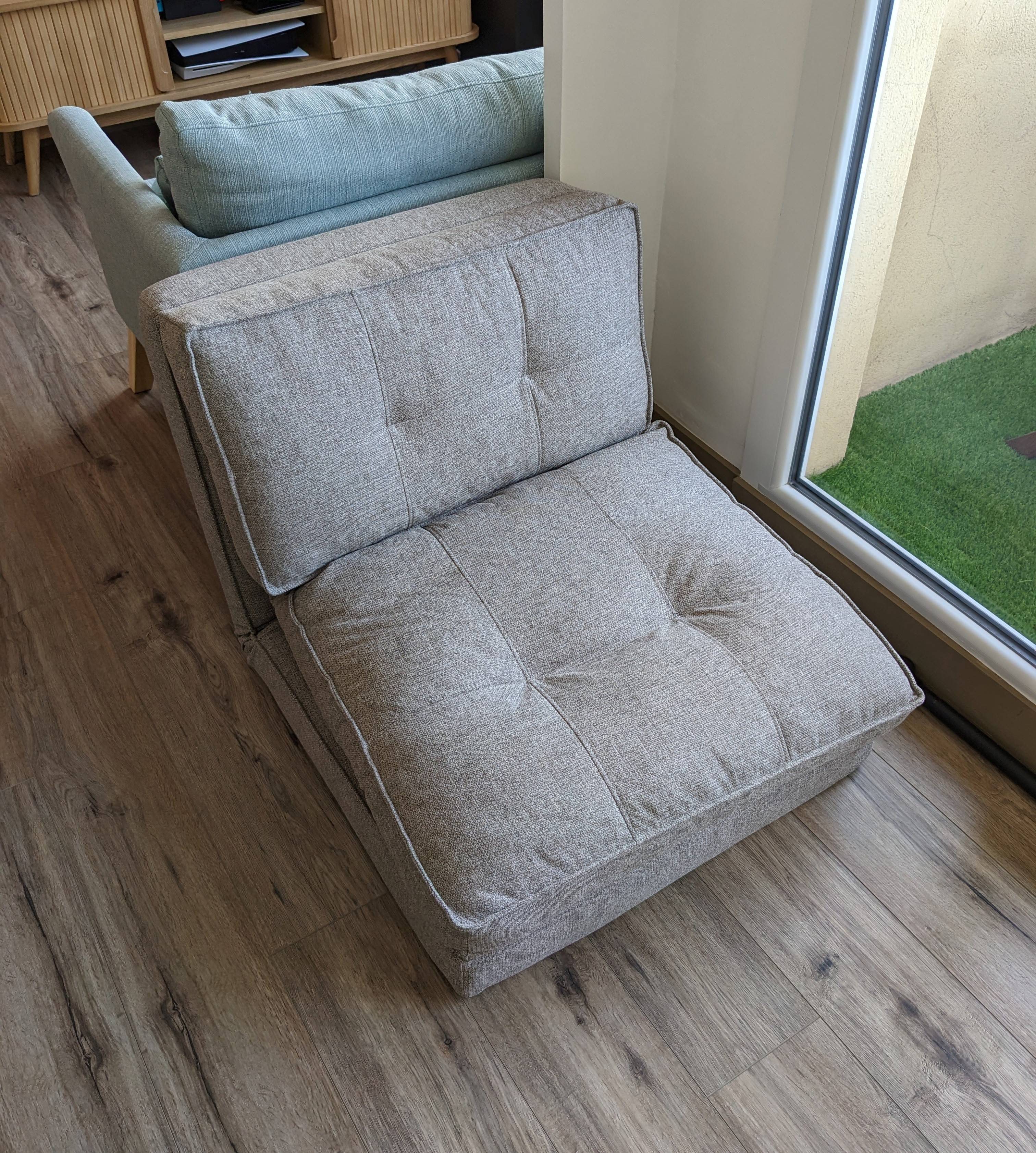 Ultra pratique, cette chauffeuse convertible ne délaisse pas pour autant son sens du style. Elle revêt un doux tissu gris chiné et une belle finition capitonnée. Avec son look discret, SALLY est un fauteuil modulable qui se fondra autant dans un intérieur scandinave que contemporain. Pour l'accessoiriser, misez sur un joli coussin brodé et un plaid au toucher douillet !