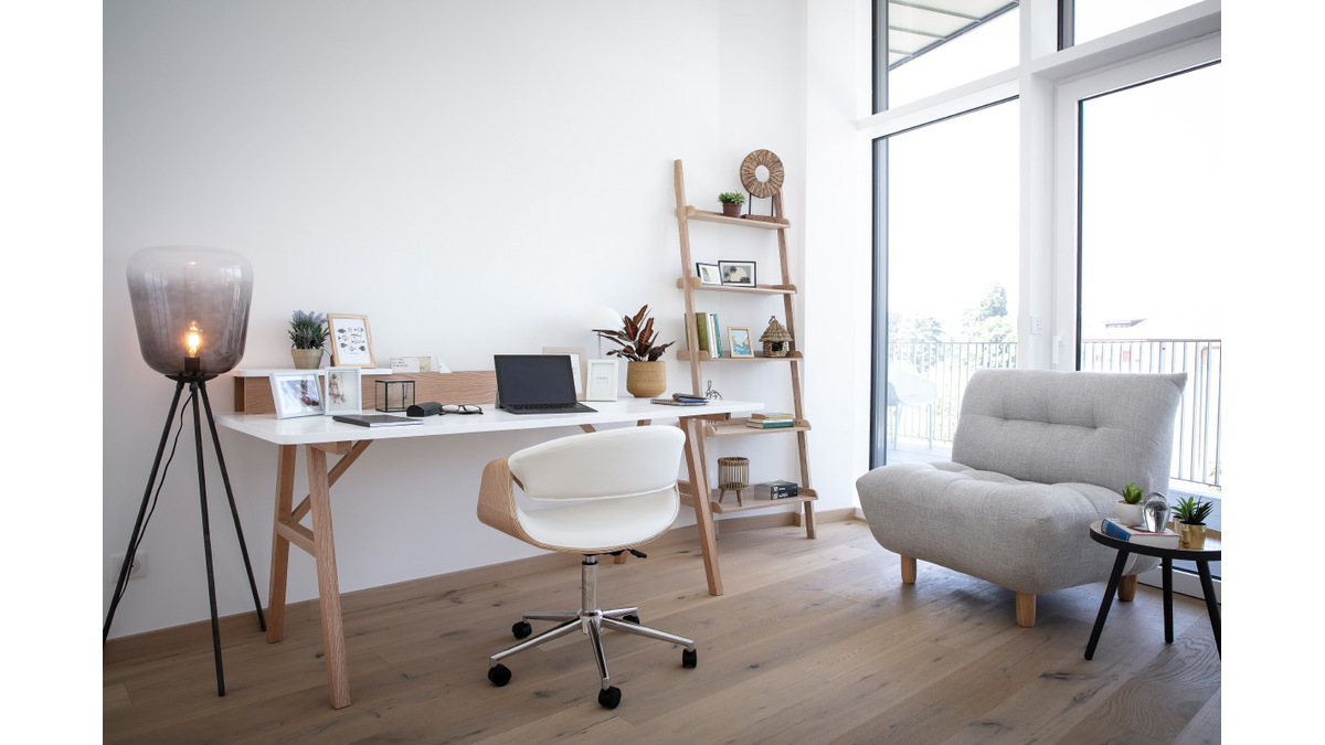 Le fauteuil de bureau ARAMIS mêle à la perfection le polyuréthane et le bois pour de beaux contrastes qui lui donnent un look vintage assumé très tendance. Associé à notre bureau NEW MAX, il apportera une touche contemporaine à votre bureau.