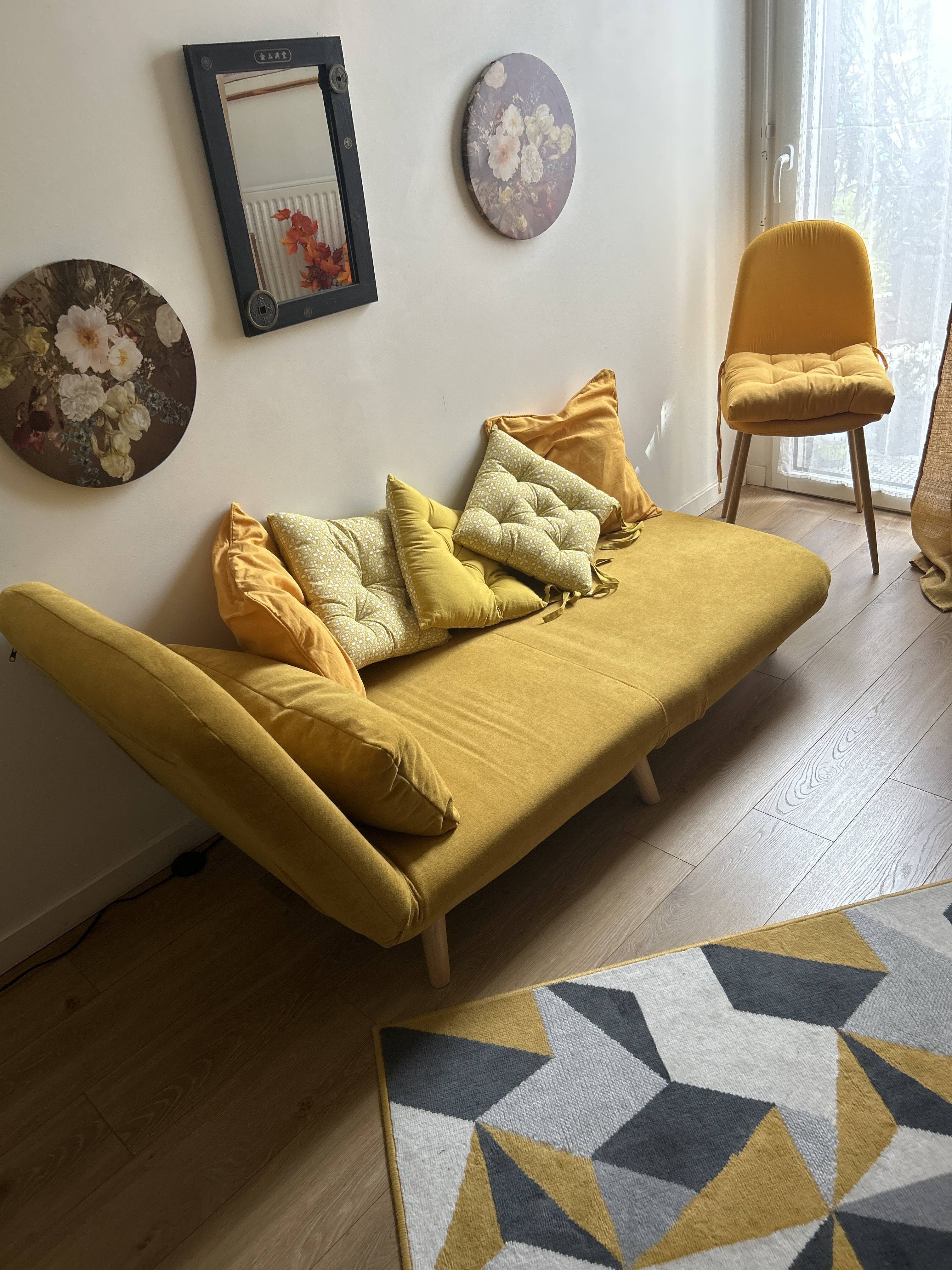 De style scandinave, cette chauffeuse 1 place en tissu effet velours apportera douceur et élégance à votre pièce à vivre. Sa couleur jaune moutarde amènera également une certaine gaieté à votre intérieur.