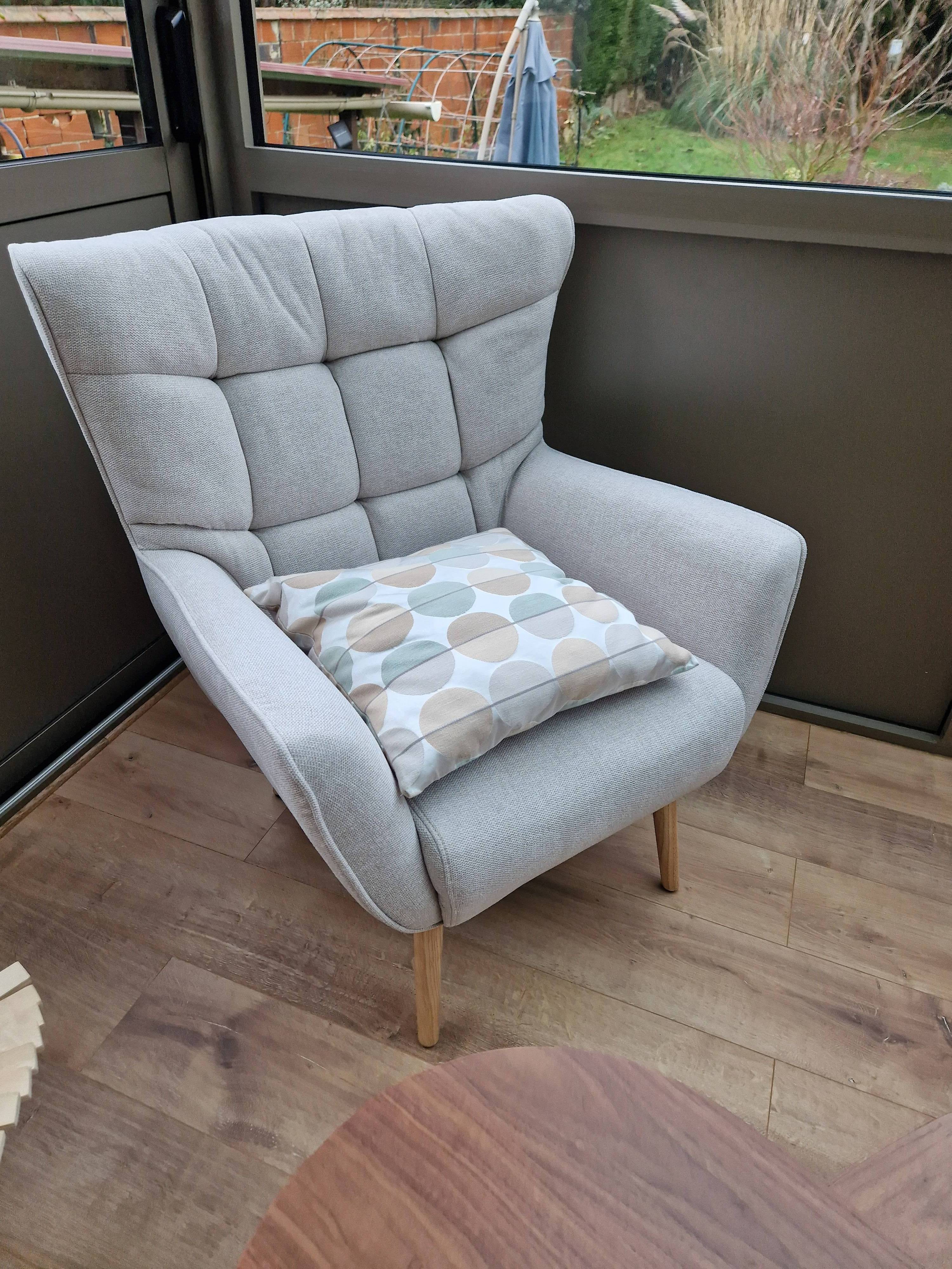 Le fauteuil AVERY semble nous inviter à la détente. C'est le dossier capitonné et le rembourrage de l'assise qui donnent cet effet unique. Ils ont été associés à une forme évasée et des dimensions généreuses pour un maximum de confort. Ce grand fauteuil vert de gris et bois clair réunit également larges accoudoirs et dossier haut, le parfait combo pour tous ceux qui aiment se lover dans leur fauteuil de salon. Le piètement en hévéa massif et le revêtement en tissu apportent une touche chaleureuse à l'ensemble.