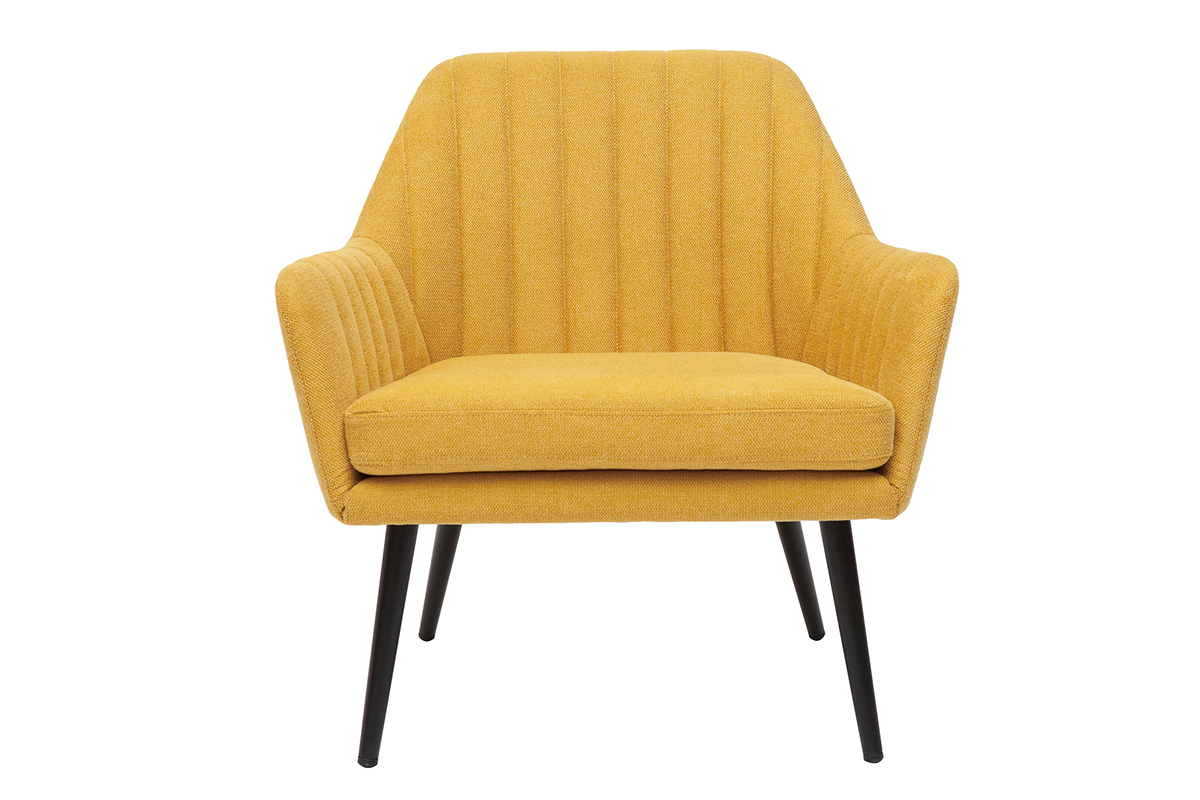 Qu'il prenne place dans un séjour ou dans une chambre, ce fauteuil aux volumes harmonieux nous enveloppe de sa douceur. Avec ses accoudoirs évasés et son assise généreusement rembourrée (densité de la mousse 30 kg/m3), il offre un excellent confort au quotidien. Vous appréciez également la texture unique de son tissu effet velours texturé jaune moutarde (95% polyester, 5% nylon). Perché sur quatre pieds fuselés en métal noir (H27 cm), ce fauteuil spacieux propose un beau volume d'assise.