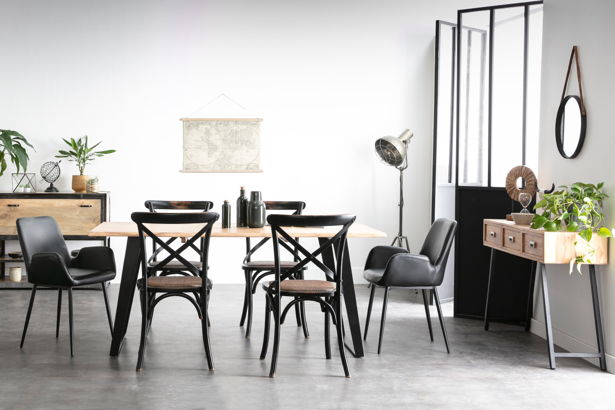 Chic et à la fois minimalistes, ces fauteuils TIKA rappellent le style vintage grâce aux pieds en métal et à la forme de l'assise et du dossier. Leur revêtement en polyuréthane est facile d'entretien tout en apportant une touche raffinée. Leur couleur noire ainsi que les matériaux utilisés compléteront joliment du mobilier aux matériaux bruts comme le bois ou le métal. Associez par exemple notre table à manger MADISON avec nos chaises TIKA pour un look industriel, rétro et chic.