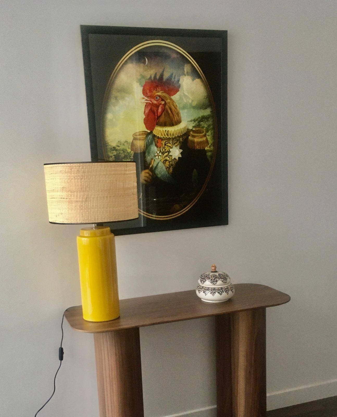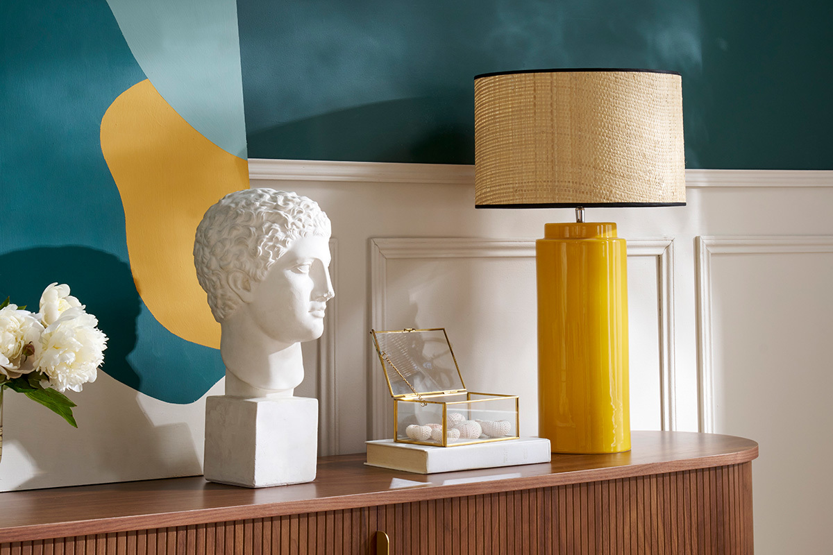 Grâce à son abat-jour naturel, cette lampe à poser en céramique émaillée jaune diffuse une lumière tamisée que l'on affectionne tout particulièrement pour instaurer une ambiance douce et chaleureuse.
