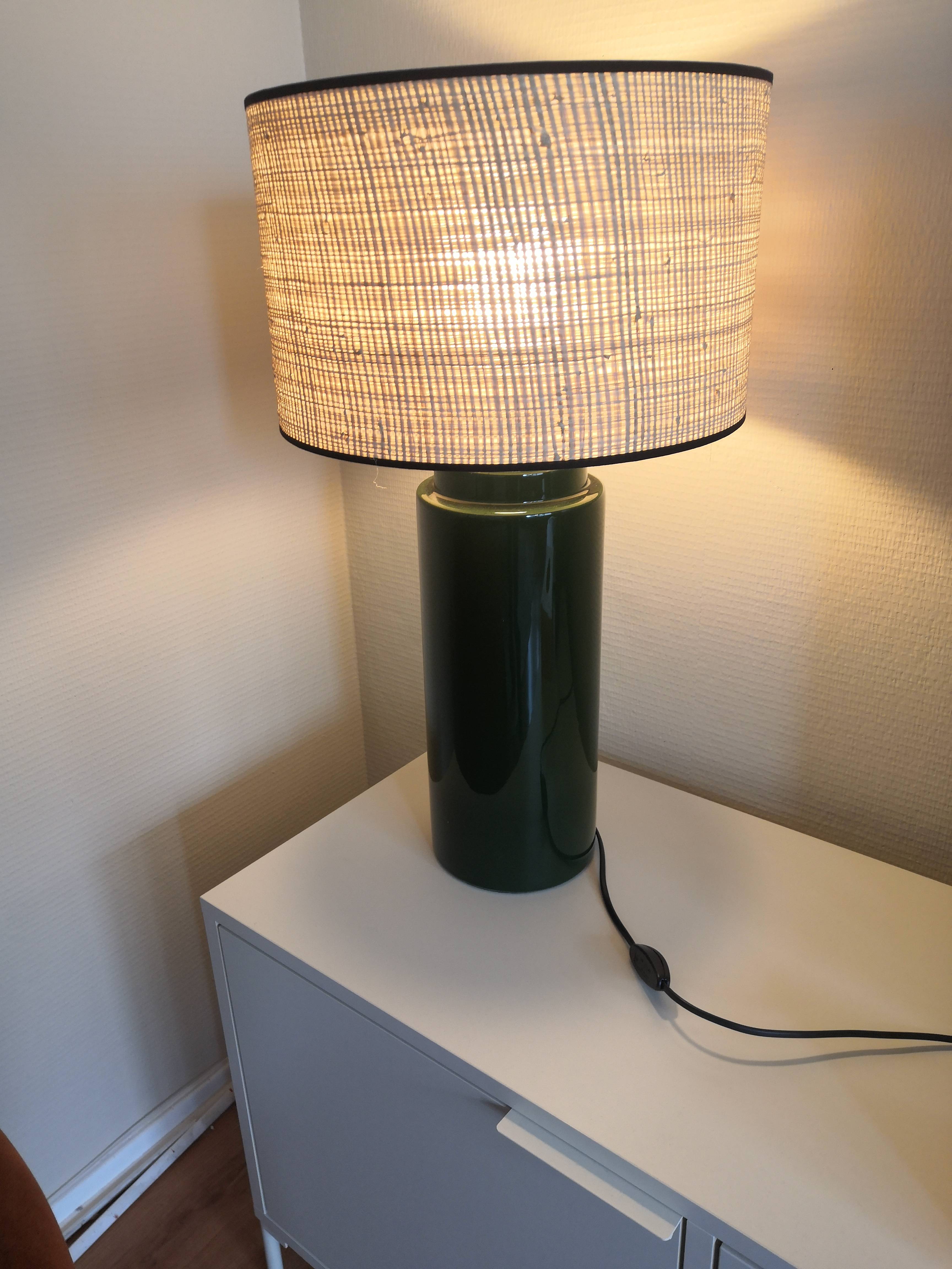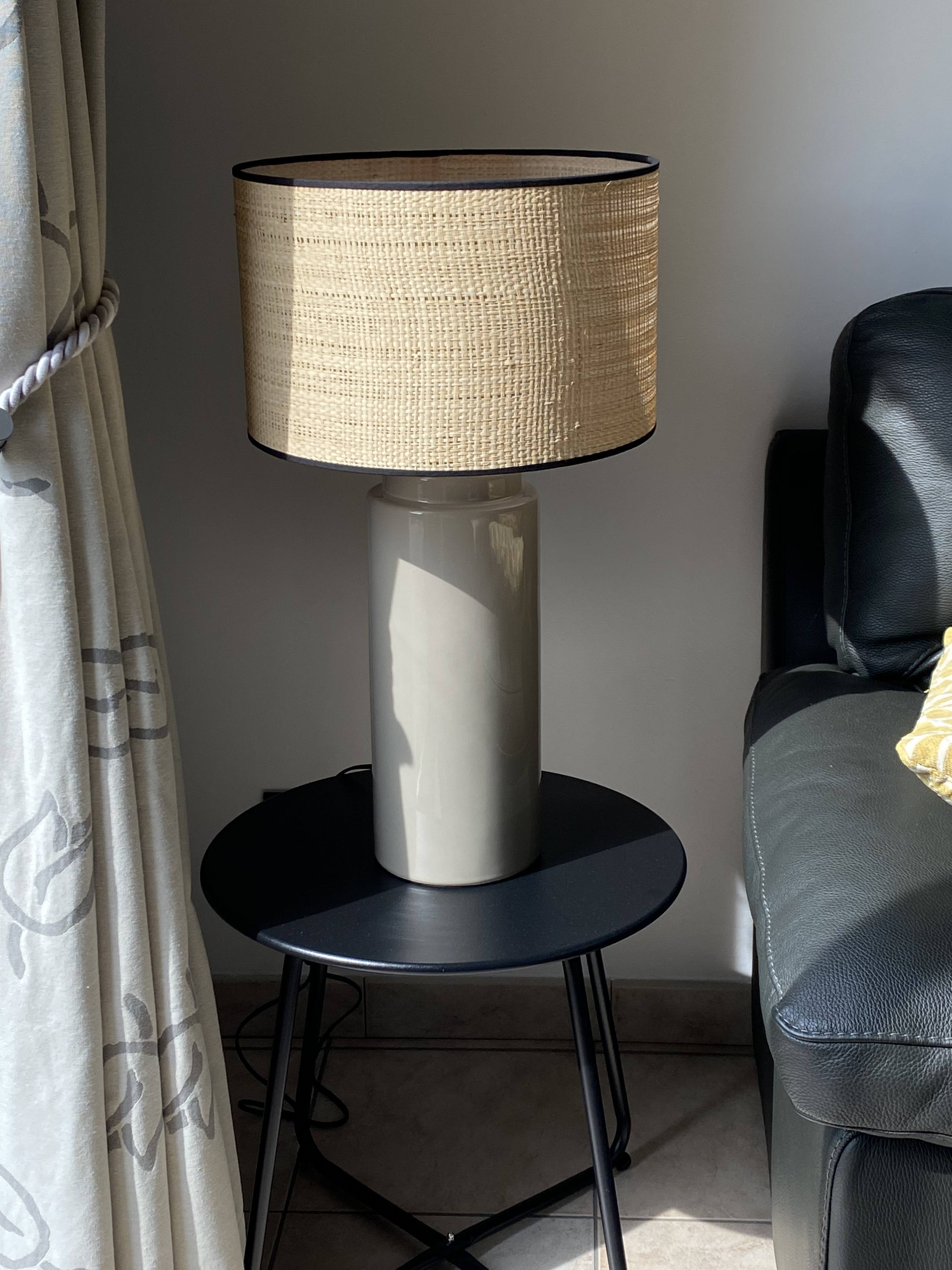Avec sa grande base cylindrique en céramique émaillée jaune et son abat-jour en raphia naturel, cette lampe à poser jaune arbore un jeu de matières justement maîtrisé. Elle offre le parfait mélange entre modernité et authenticité ! On aime particulièrement le biais en coton noir qui souligne délicatement l'abat-jour. Avec son look épuré, cette lampe à poser fabriquée au Portugal s'harmonise tout en douceur avec le reste de votre intérieur.