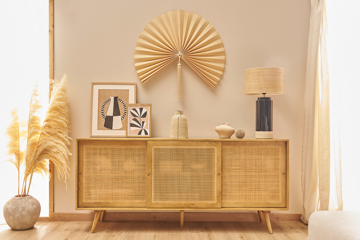 MAJES occupera une place de choix dans la maison. Dans une chambre un brin bohème, on l'imagine parfaitement près d'une tête de lit en rotin joliment travaillée. Elle trouvera tout autant sa place dans un séjour aux influences ethnique chic. Disposée sur un buffet en bois massif, cette lampe à poser tendance saura faire tout son effet.