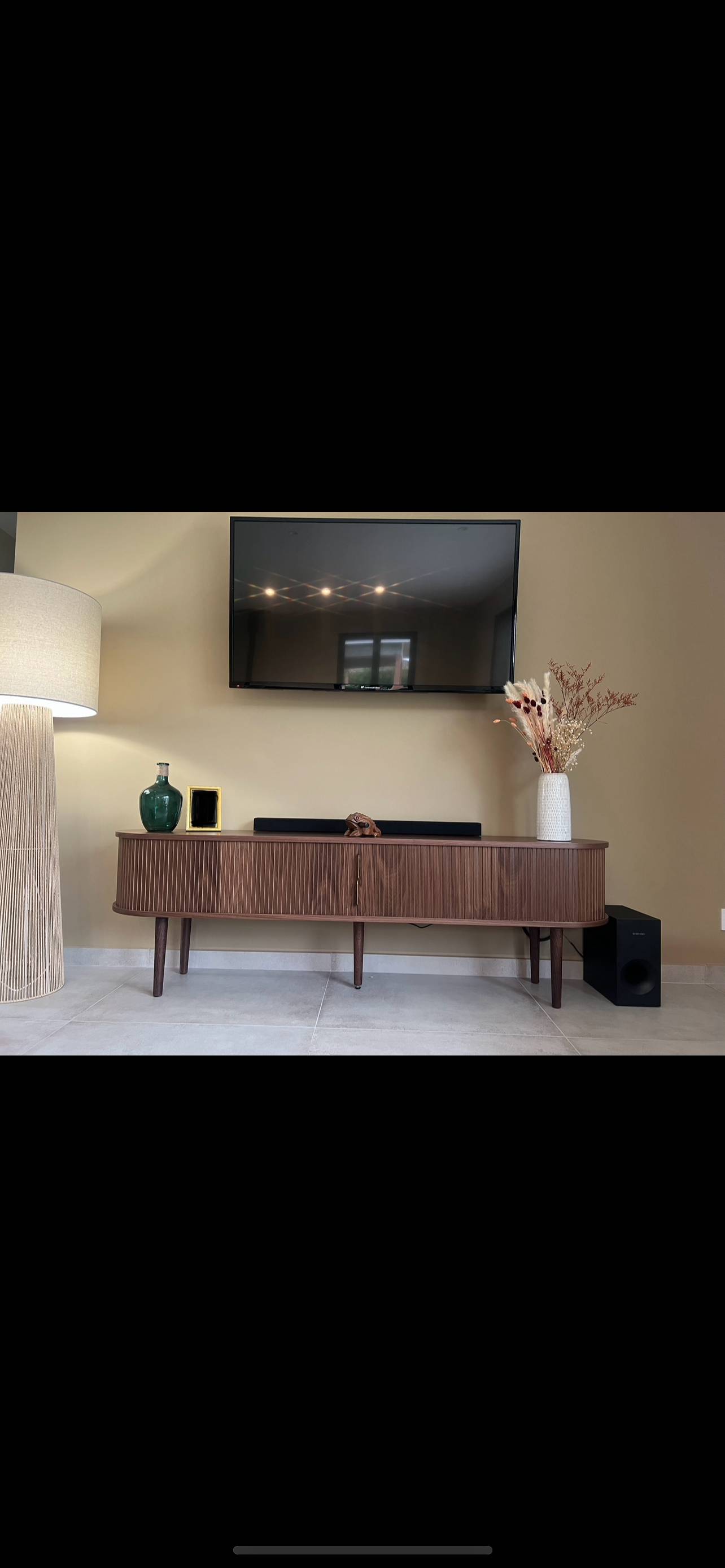 Tout comme le reste de la collection EPIC, ce meuble TV rétro se nourrit du charme du passé. Ses angles galbés et ses pieds fuselés ne sont pas sans rappeler les meubles iconiques des 70's !