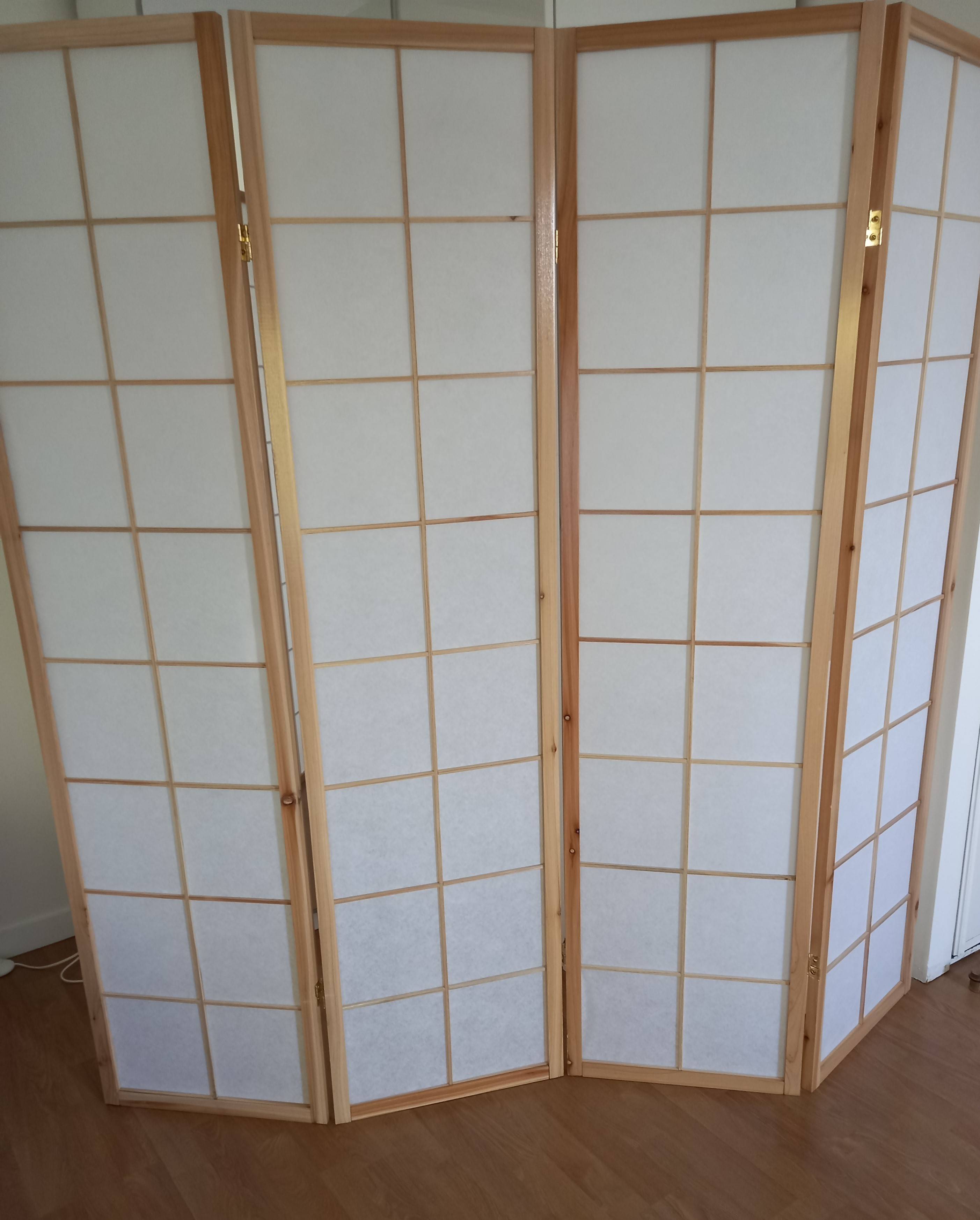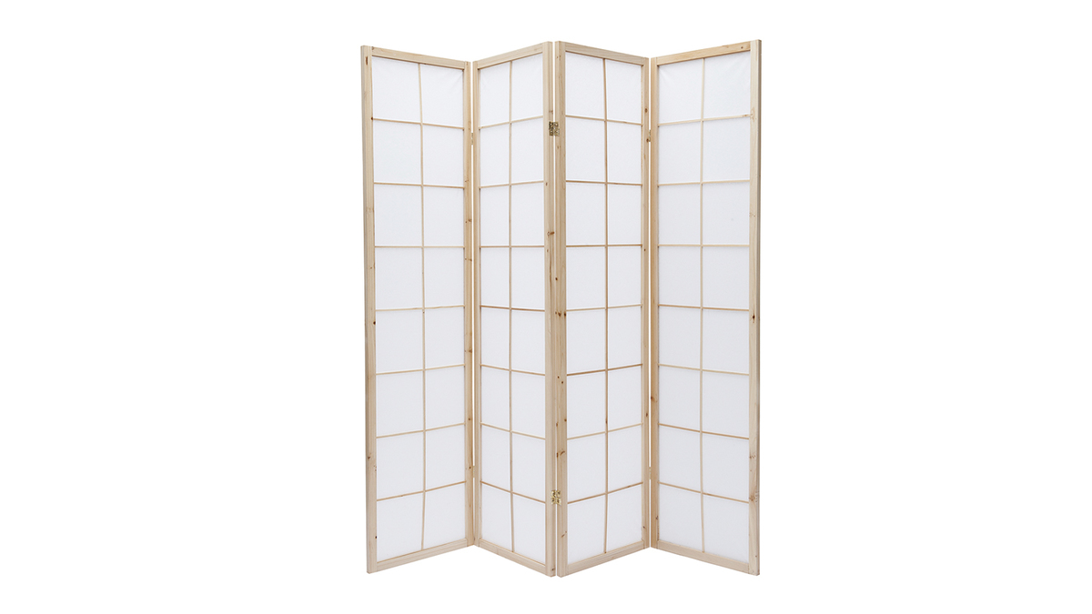 Ce grand paravent en bois et papier de riz aux dimensions L176 x H174.5 cm est composé de 4 vantaux.