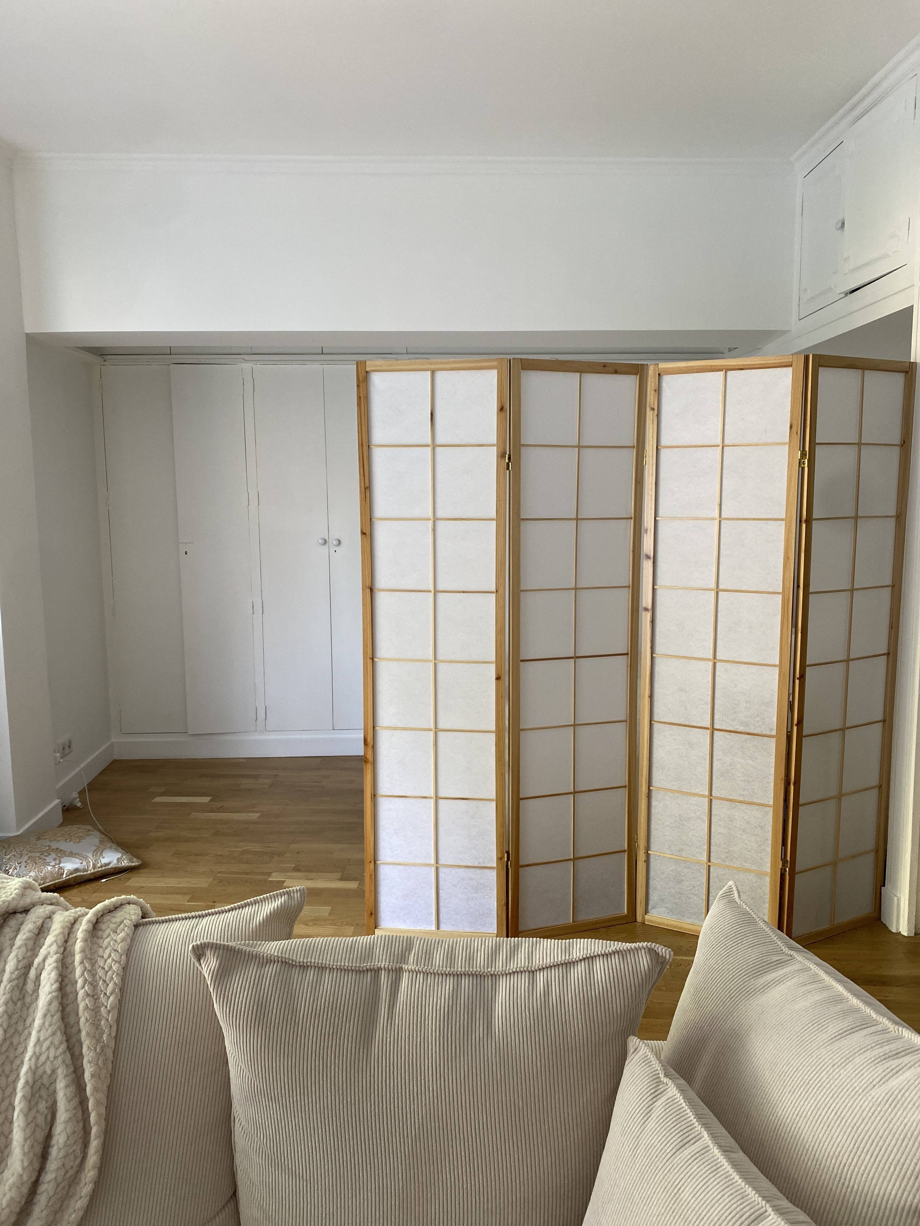 Idéal en complément d'un grand tapis pour créer une séparation dans une grande pièce, ce paravent déco blanc et bois clair pourra également devenir un objet déco pour réchauffer l'atmosphère d'un séjour ou d'une chambre ou encore servir de tête de lit.
