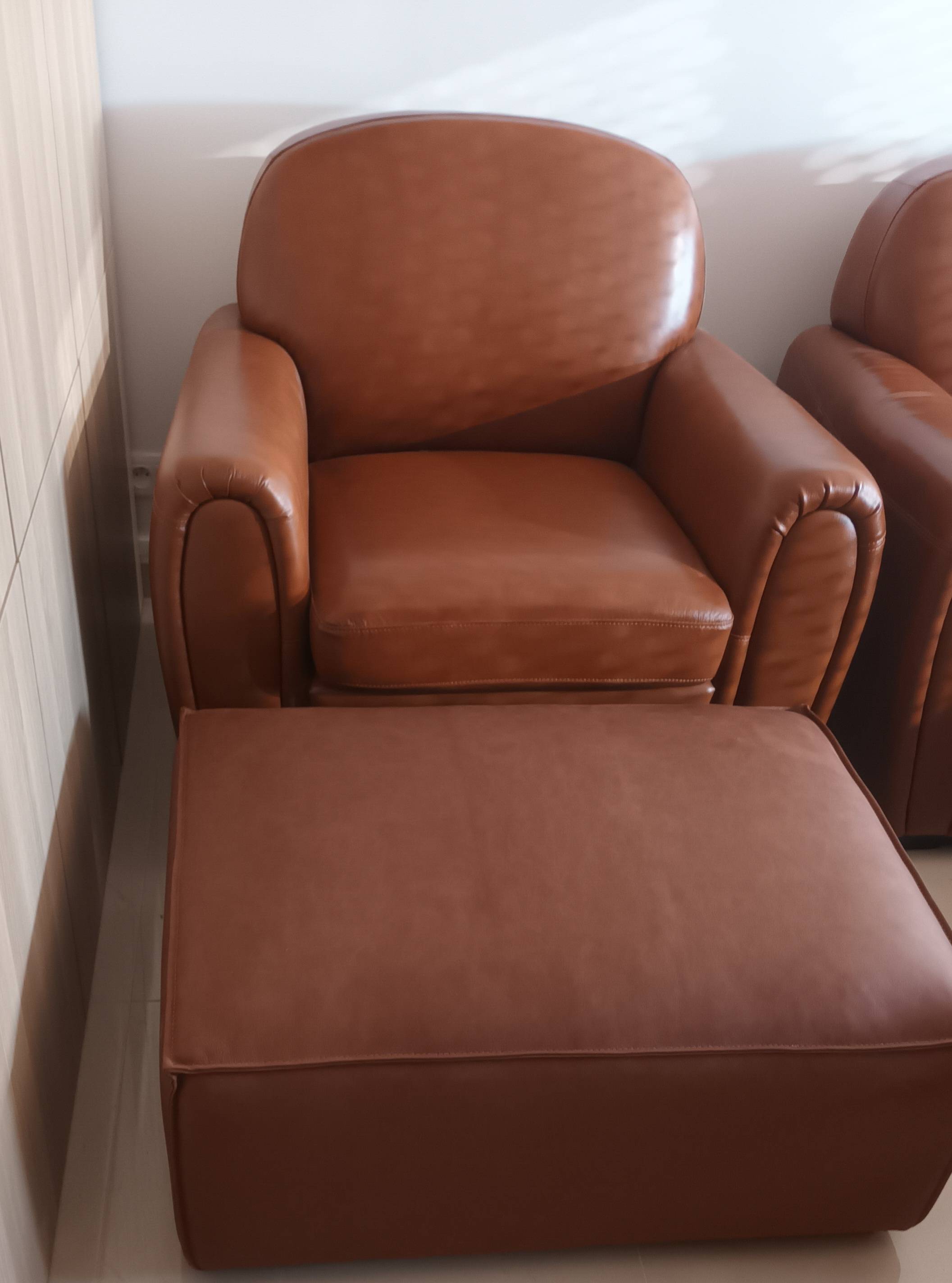Revêtement : cuir de buffle (assise) et PVC (côtés)