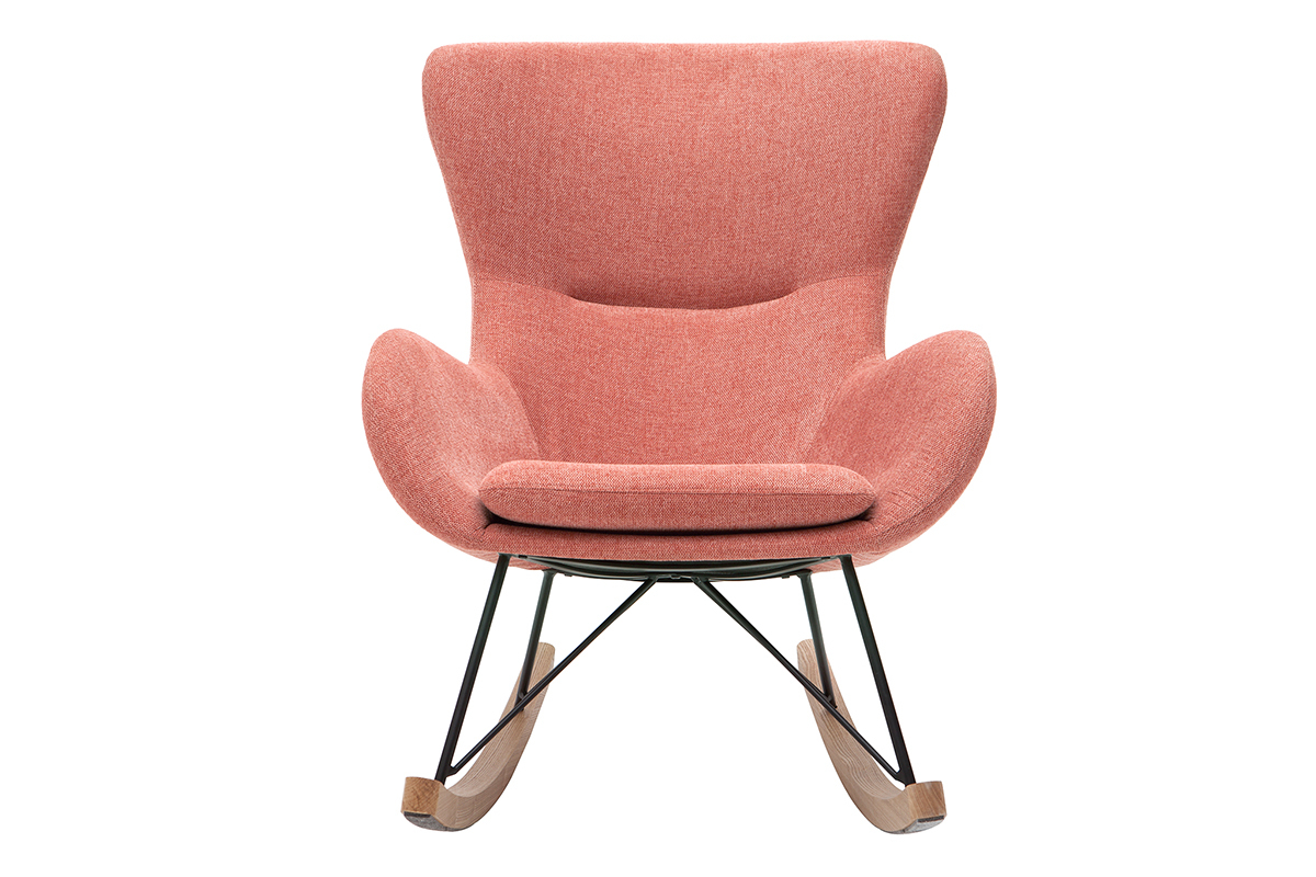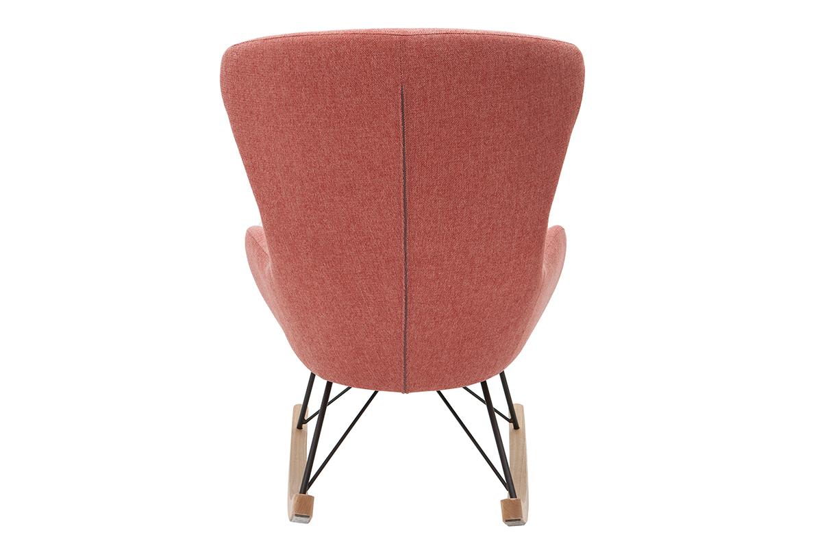 Revêtue de tissu effet velours texturé couleur terracotta, ce fauteuil à bascule élégant arbore une teinte tendance. La chaleur du coloris associée au piètement en bois et métal en fait un élément dans l'air du temps et facile à adopter chez soi. Retrouvez dans le modèle ESKUA, le petit balancement propre aux fauteuils à bascule. Grâce à cet incontournable de la relaxation, à vous les moments détente !