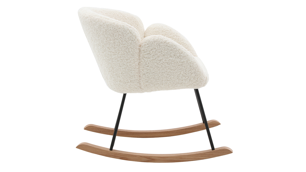 Son revêtement en effet peau de mouton toute douce confère à ce rocking chair RHAPSODY une originalité et une douceur qu'on adore, tout à fait dans l'air du temps. Son piètement constitué de bois et de métal rappelle les codes du style scandinave et en fait un fauteuil à mi-chemin entre un esprit nordique et un style contemporain.