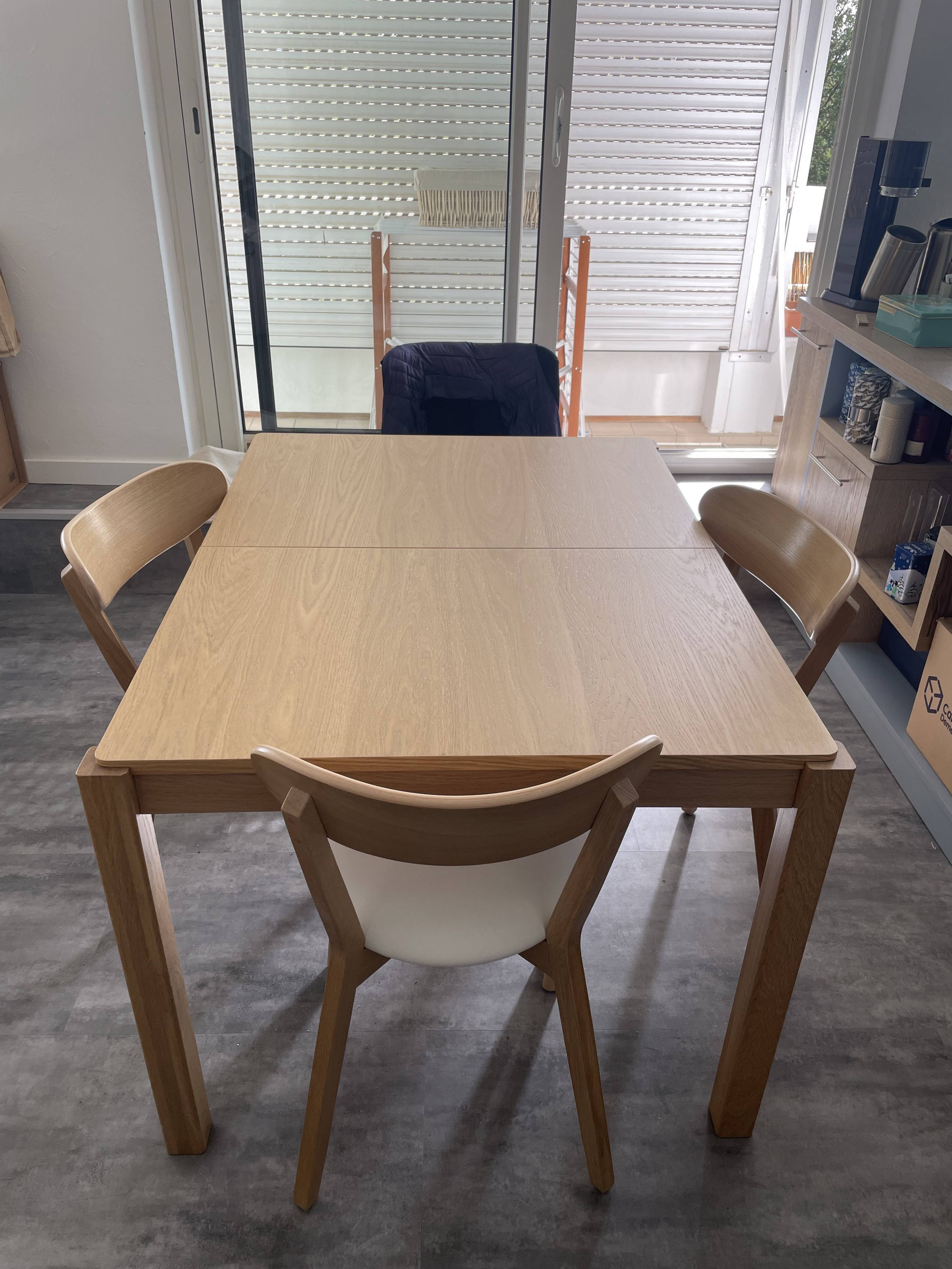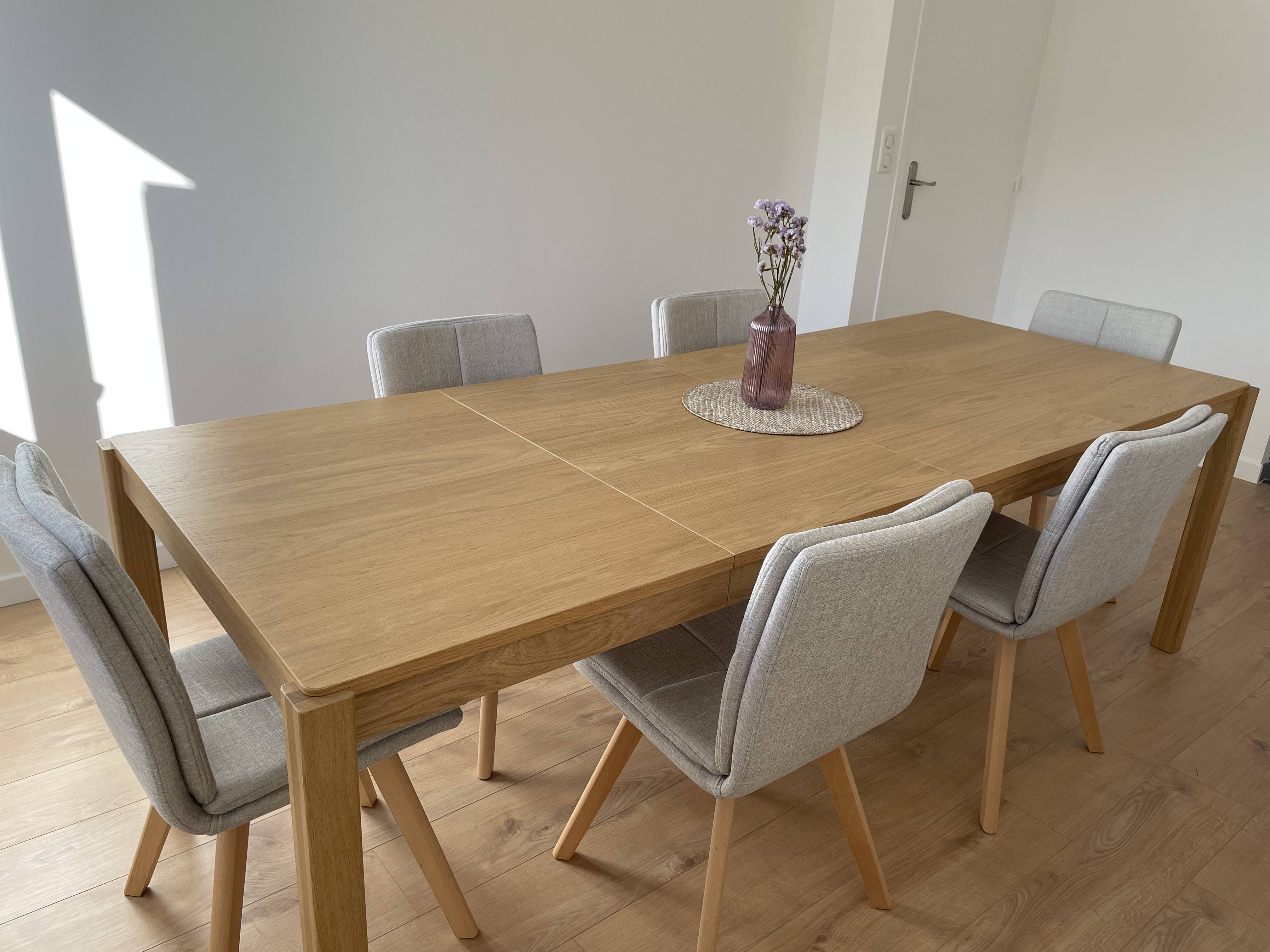 Que vous possédiez une pièce de vie exiguë ou à l'inverse un grand espace de réception, cette table à manger chaleureuse sera votre meilleure alliée au quotidien. Ses deux rallonges vous permettent de passer en un tour de main de 4 à 10 couverts (le plateau passe ainsi de 125 à 238 centimètres). Brunch dominical en famille ou apéritif improvisé entre amis : la table extensible AGALI rassemble tous vos êtres chers pour de doux moments de partage et de convivialité. Les deux rallonges se rangent très facilement sous le plateau une fois les convives partis. Le plateau plaqué chêne est associé à un solide piètement en chêne massif qui offre une grande stabilité.