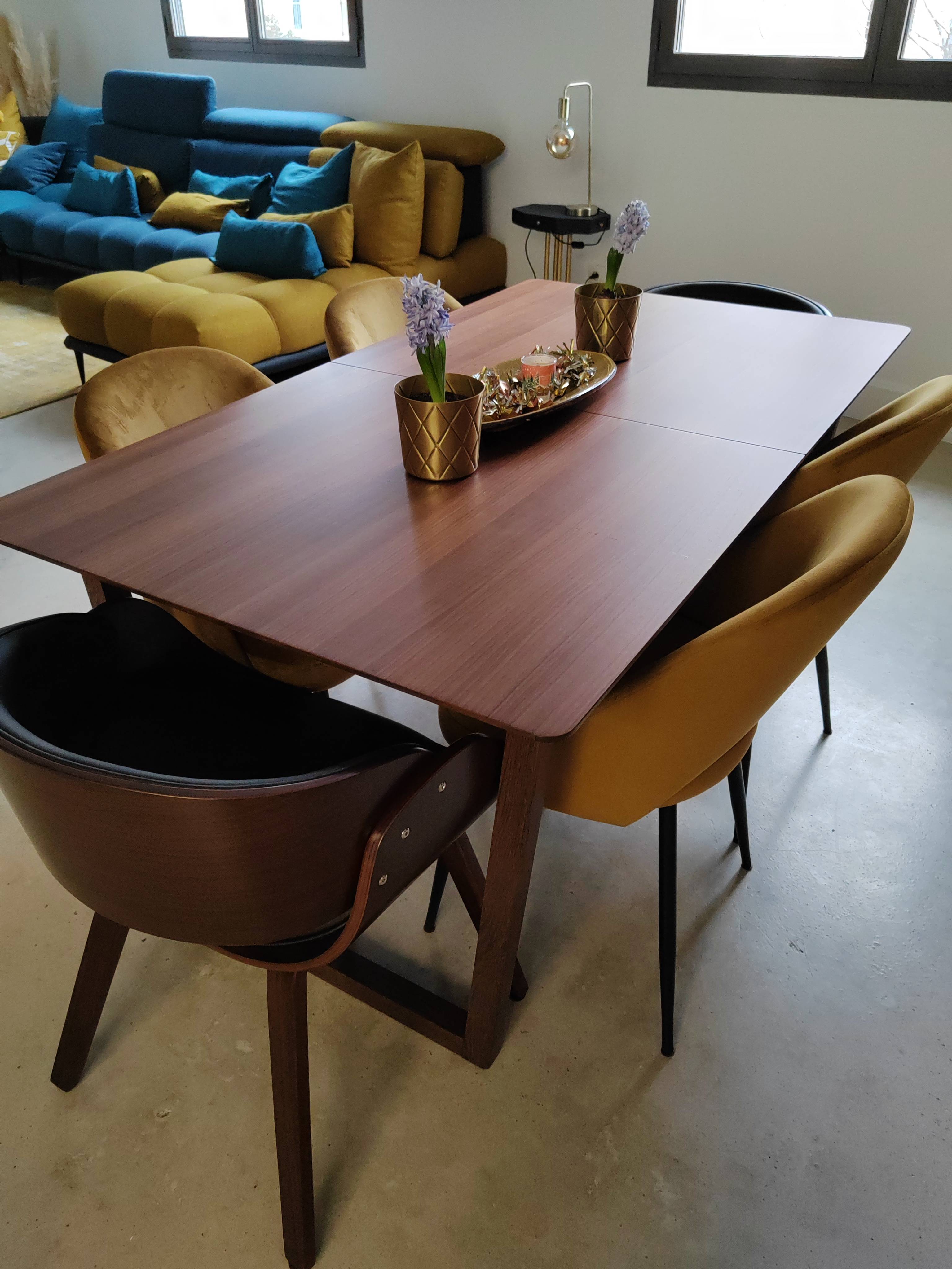 Si dans un salon aux accents rétro chic on l'imagine de toute sa superbe entourée de chaises design au revêtement velours pour un effet glamour à souhait ! Cette table à manger en bois foncé est une valeur sûre en termes de décoration, véritable caméléon, elle s'intègrera dans de nombreux styles d'intérieur.