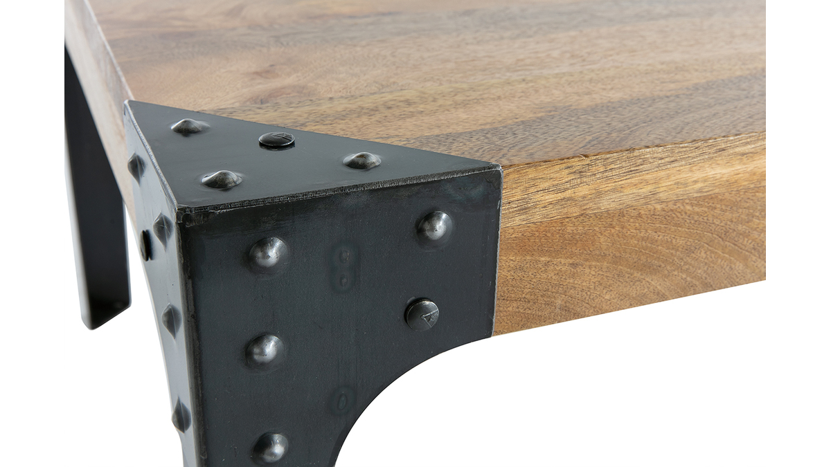 Avec son plateau en manguier et son piètement en acier, cette table affiche un style brut affirmé. Ses angles renforcés par des cornières rivetées, rappellent le mobilier industriel. Le mélange du bois massif et du métal est idéal pour donner à son salon une touche d'authenticité et un esprit loft tendance.