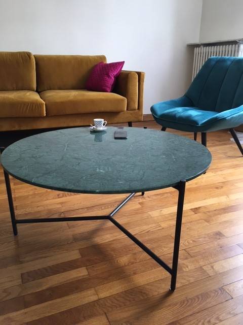 Reconnue pour être une matière noble, le marbre apporte instantanément une allure raffinée dans un intérieur. Véritable tendance déco, il n'en est pas moins un matériau incontournable du style classique. Au caractère unique grâce à ses nervures singulières et sa somptueuse couleur verte, BUMCELLO ne manque pas de capter l'attention par son aura incomparable. Pour un intérieur aussi chic que tendance, on l'associe à un beau canapé en velours.