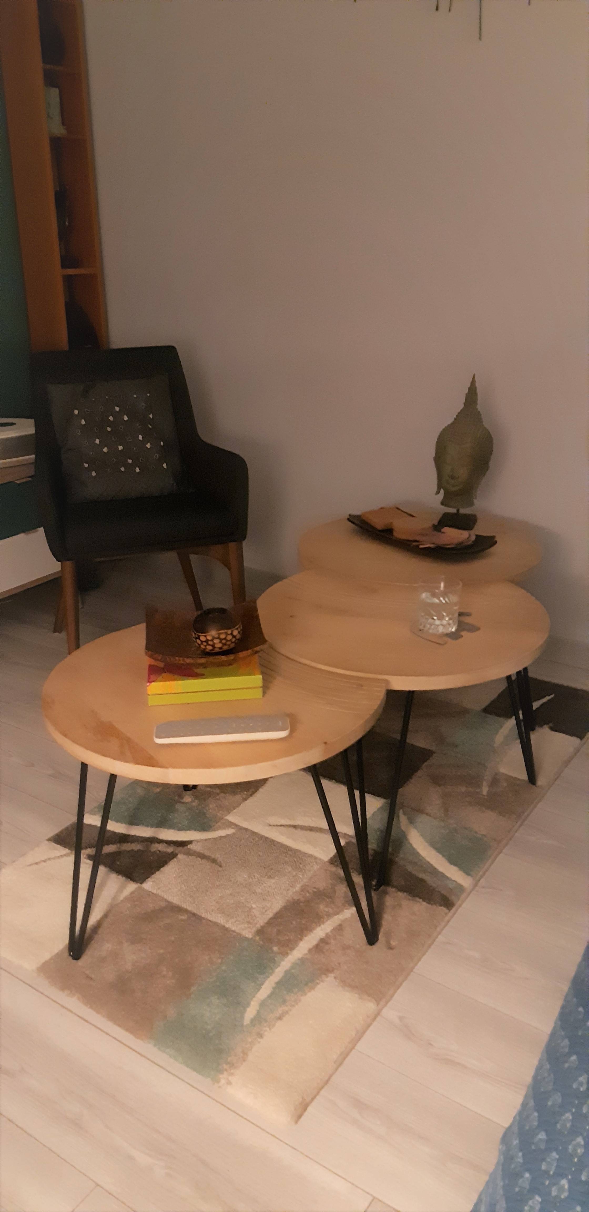 Tables basses en bois livrées prêtes à monter.